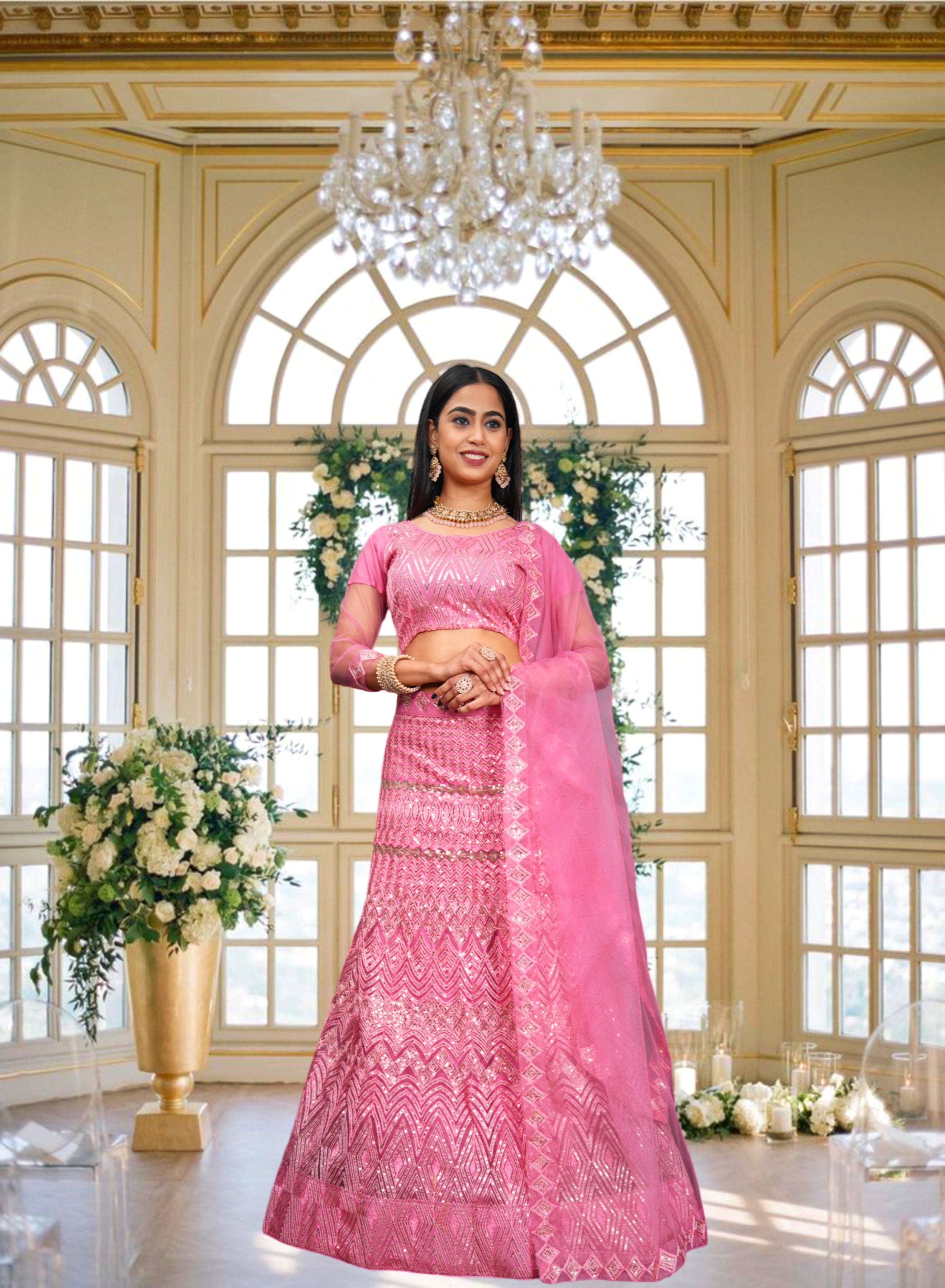 Pink Net Embroidery Lehenga Choli