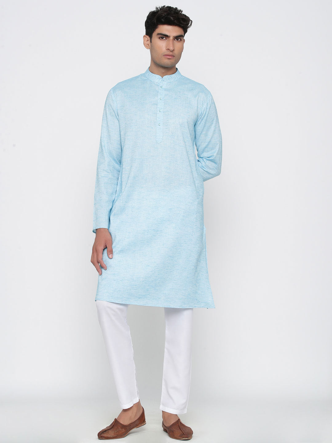 Men's Sky Blue Solid Cotton Kurta Pajama Set