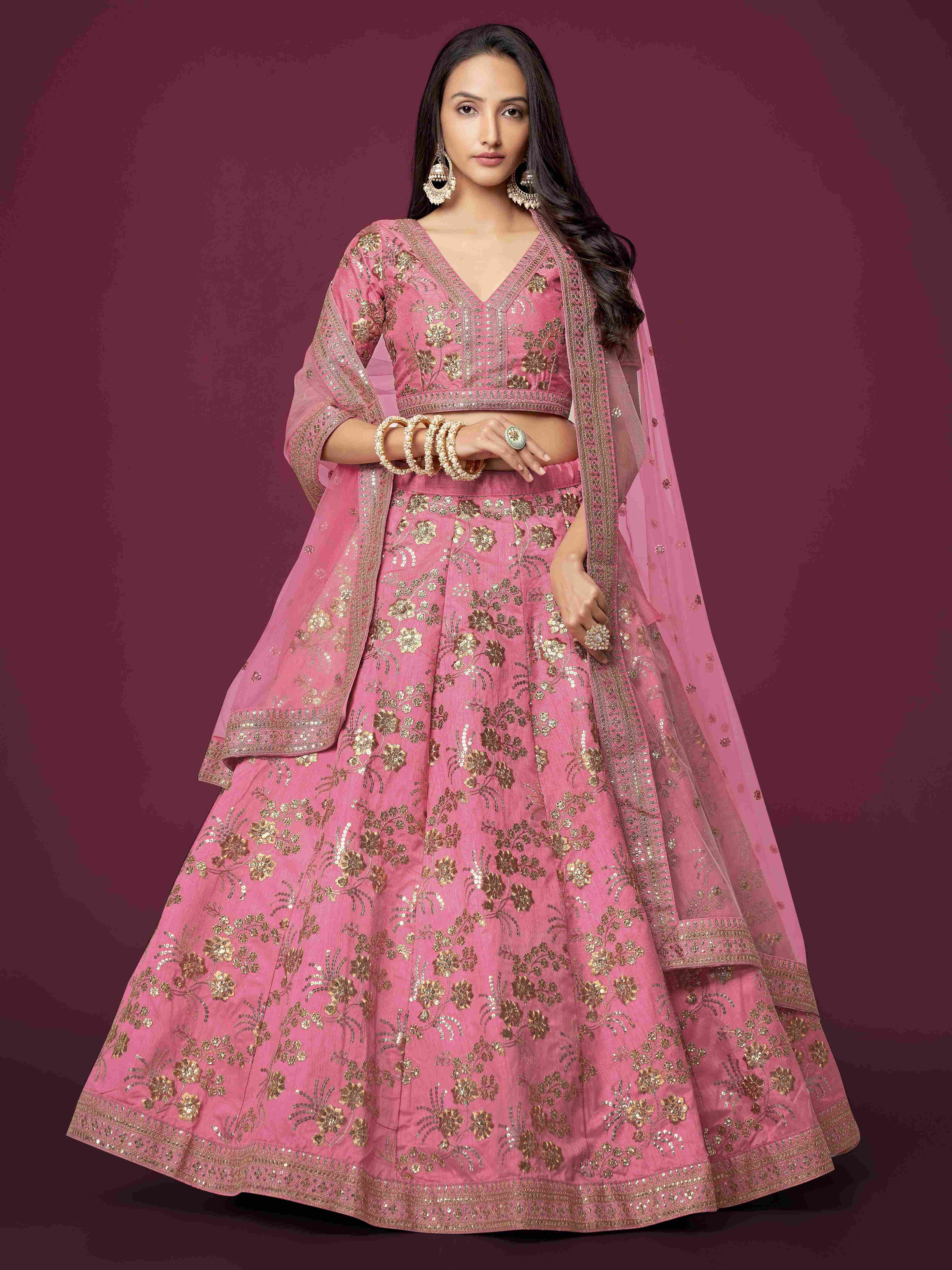 Pink Sequins Dori Embroidered Net Lehenga Choli