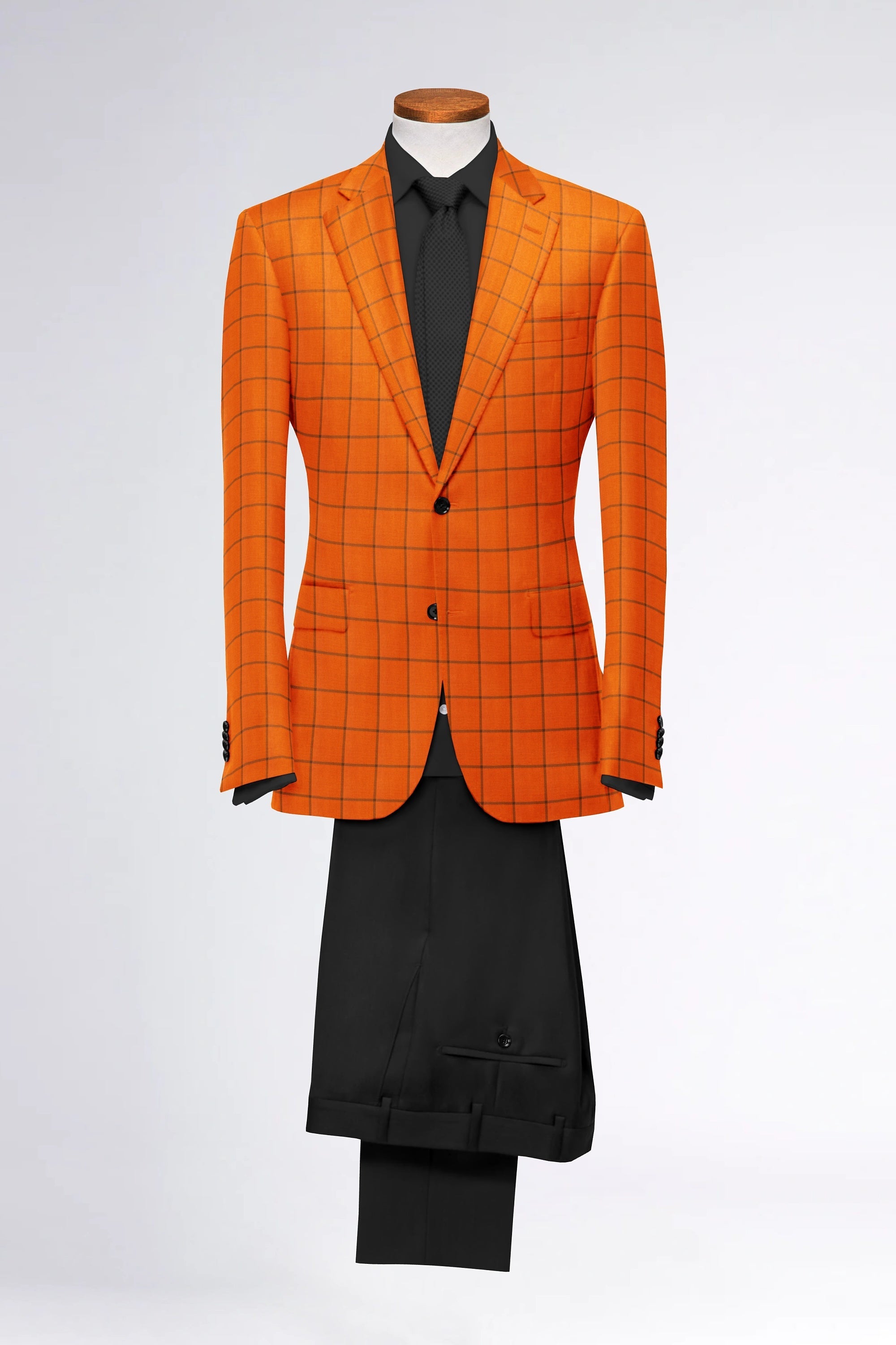 Orange Men's Two Button Dress Party Checks Print Suit Jacket Notched Lapel Slim Fit Stylish Blazer
