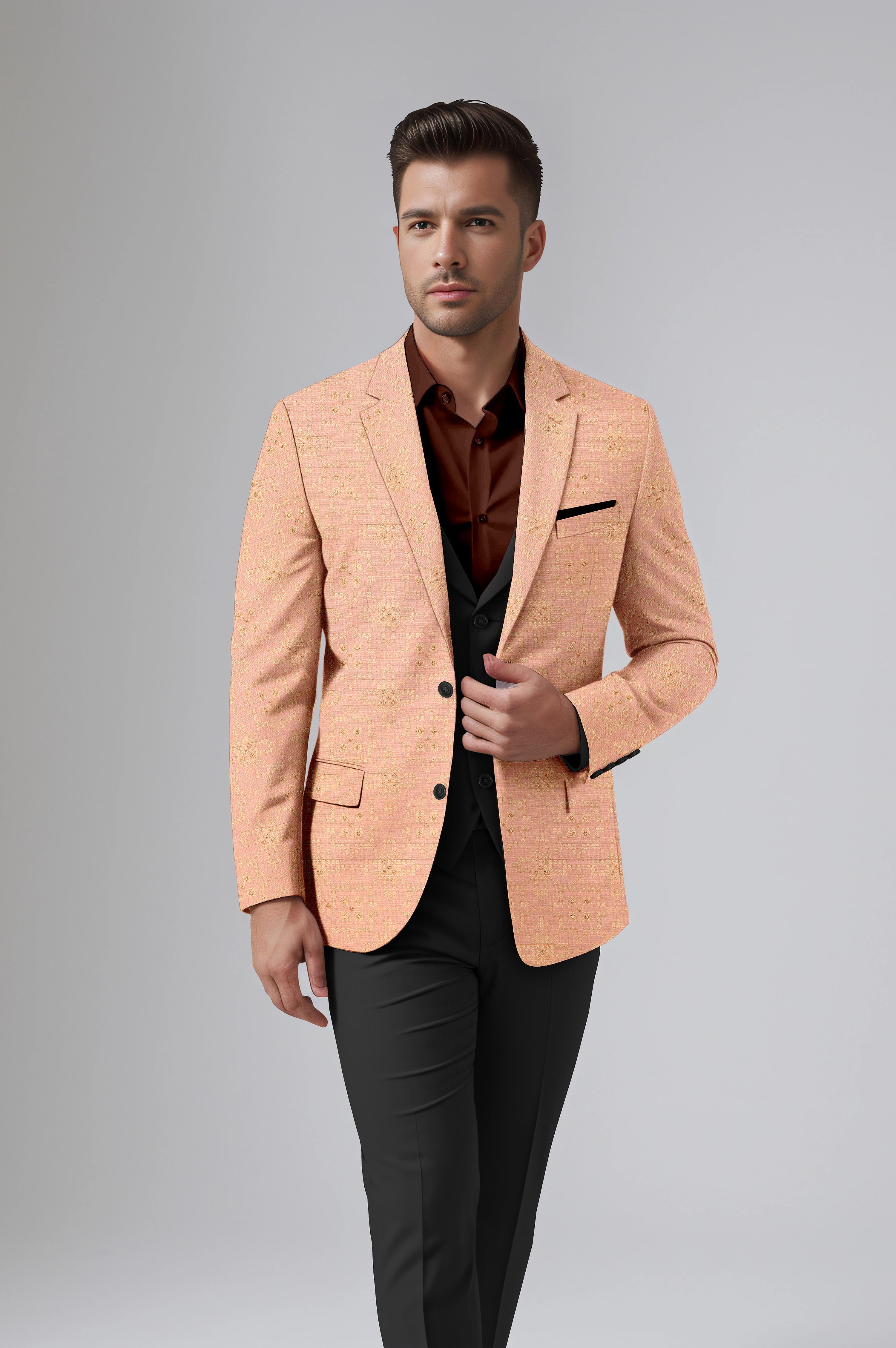 Light Salmon Men's Party Jacquard Suit Jacket Slim Fit Blazer