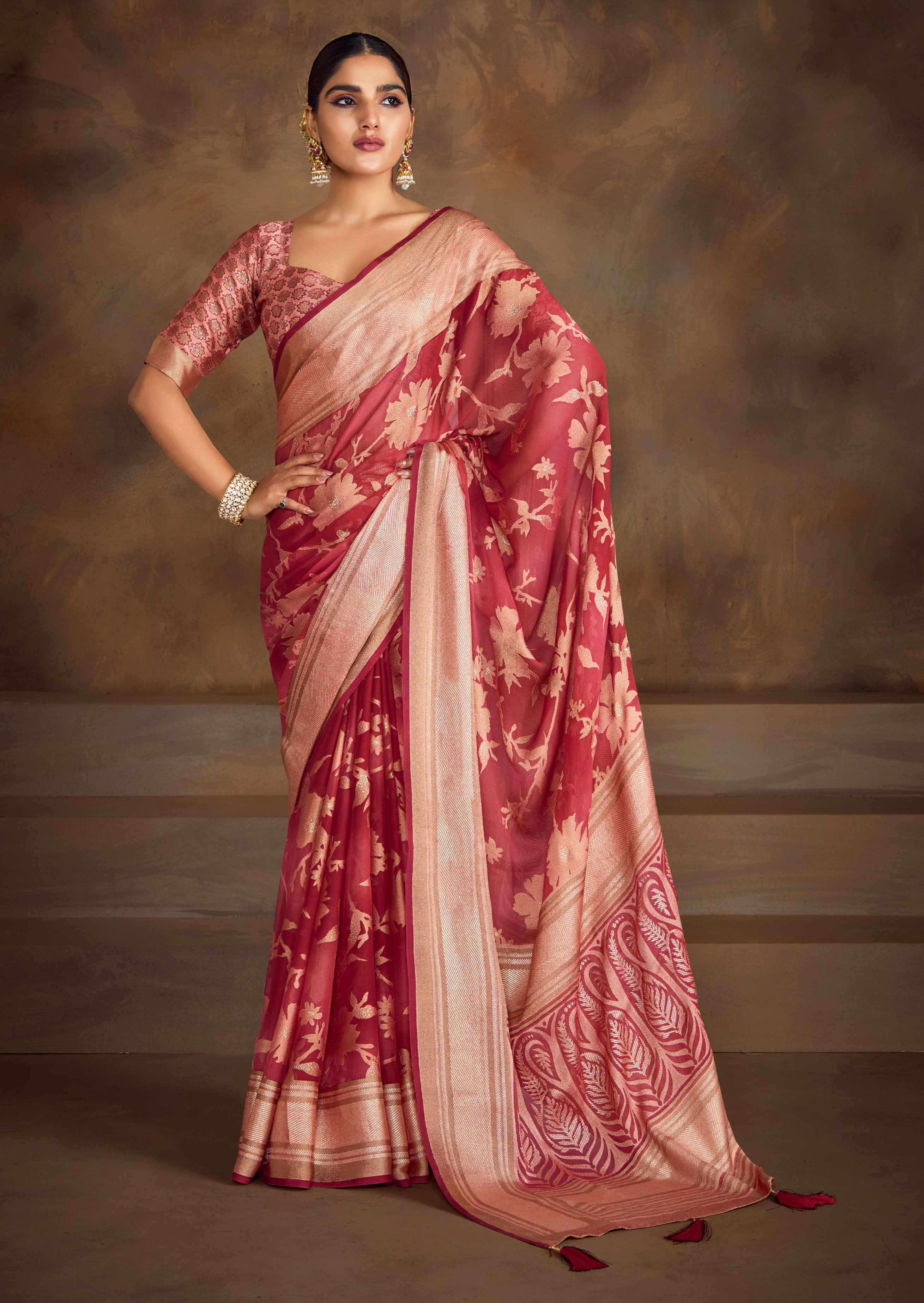 Dull Red Moss Brasso Saree