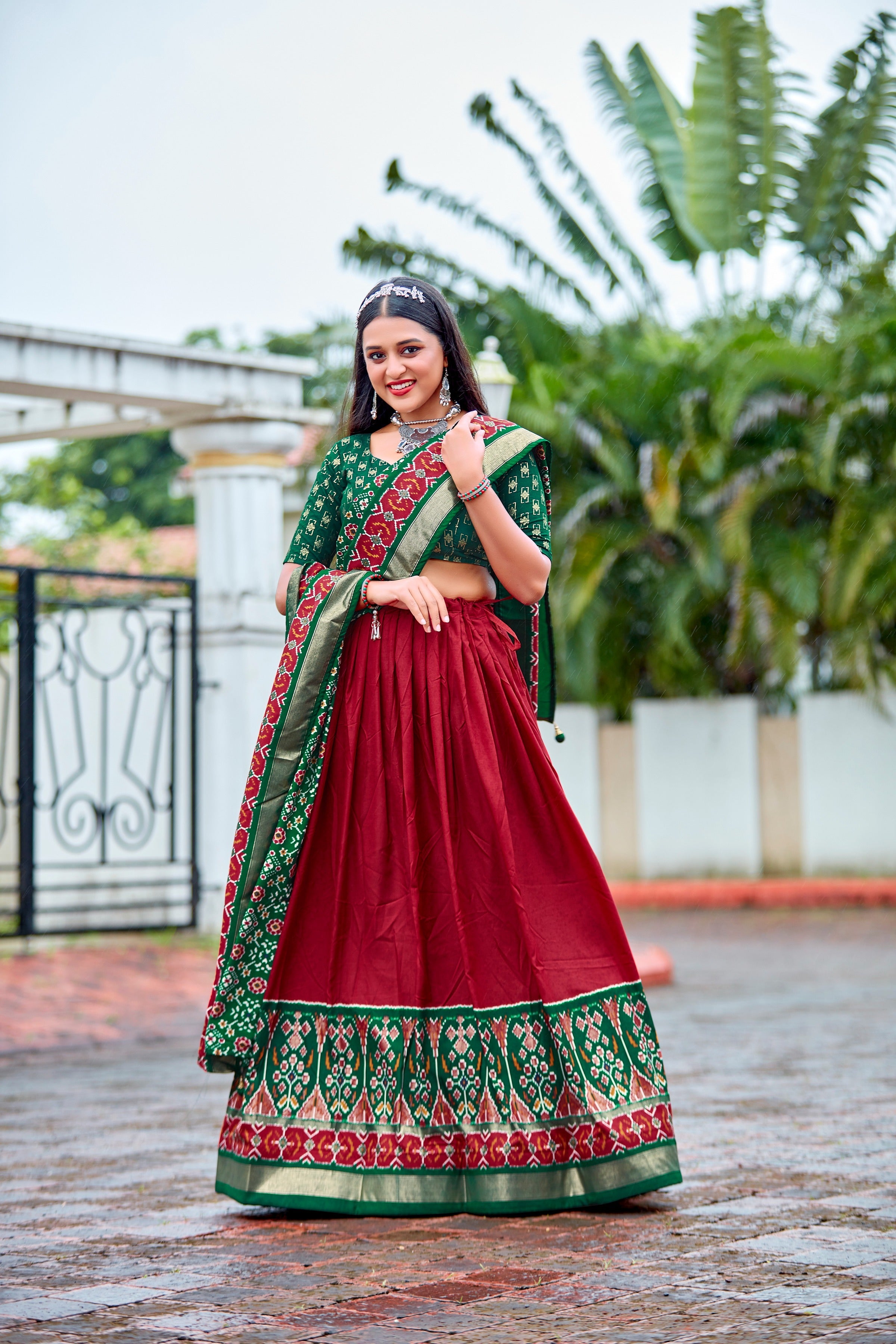 Wine Red Readymade Indian Cotton Silk Lehenga Choli Set for Women With Designer Blouse and Dupatta For Wedding