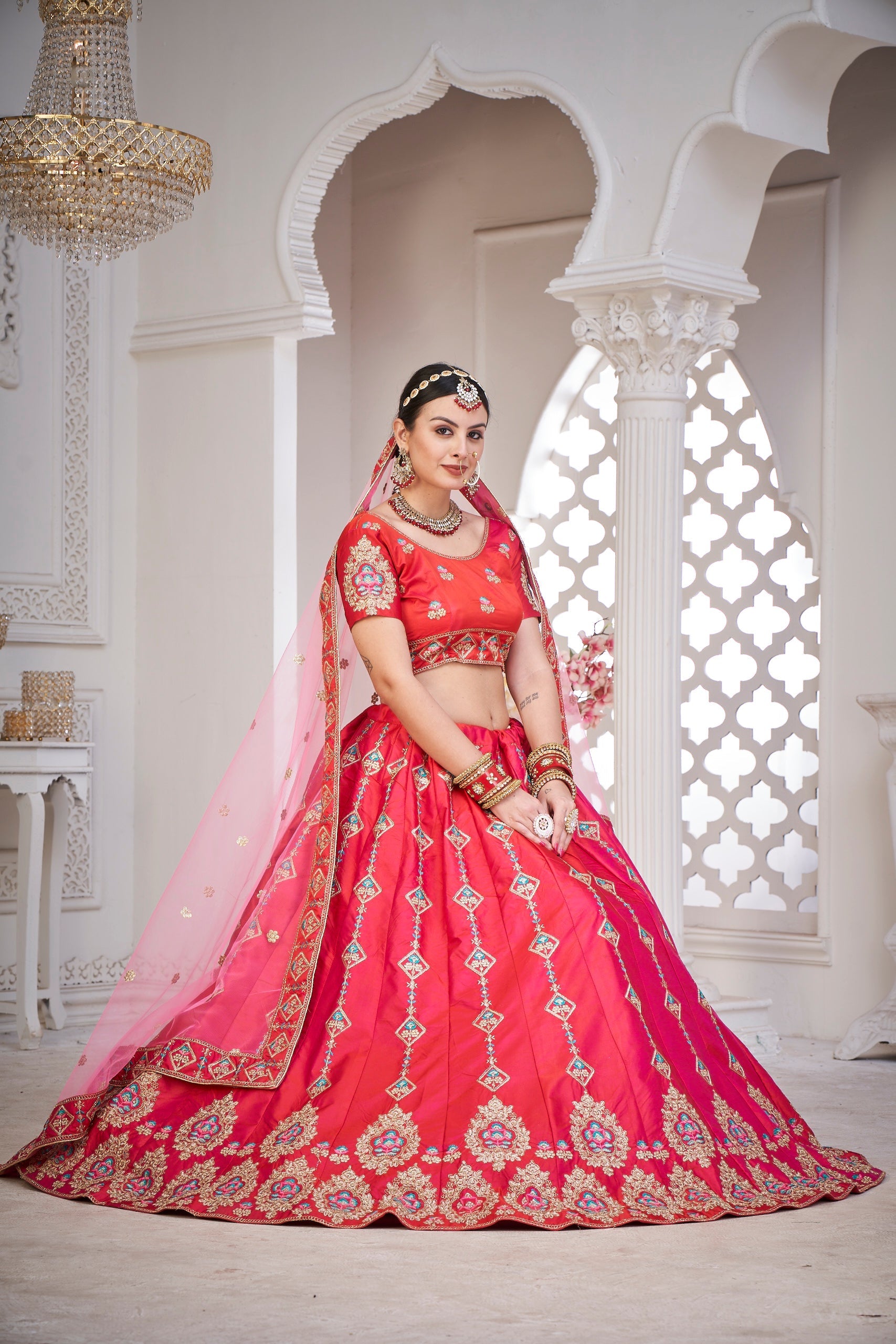 Pink Taffeta Silk Embroidery Lehenga Choli