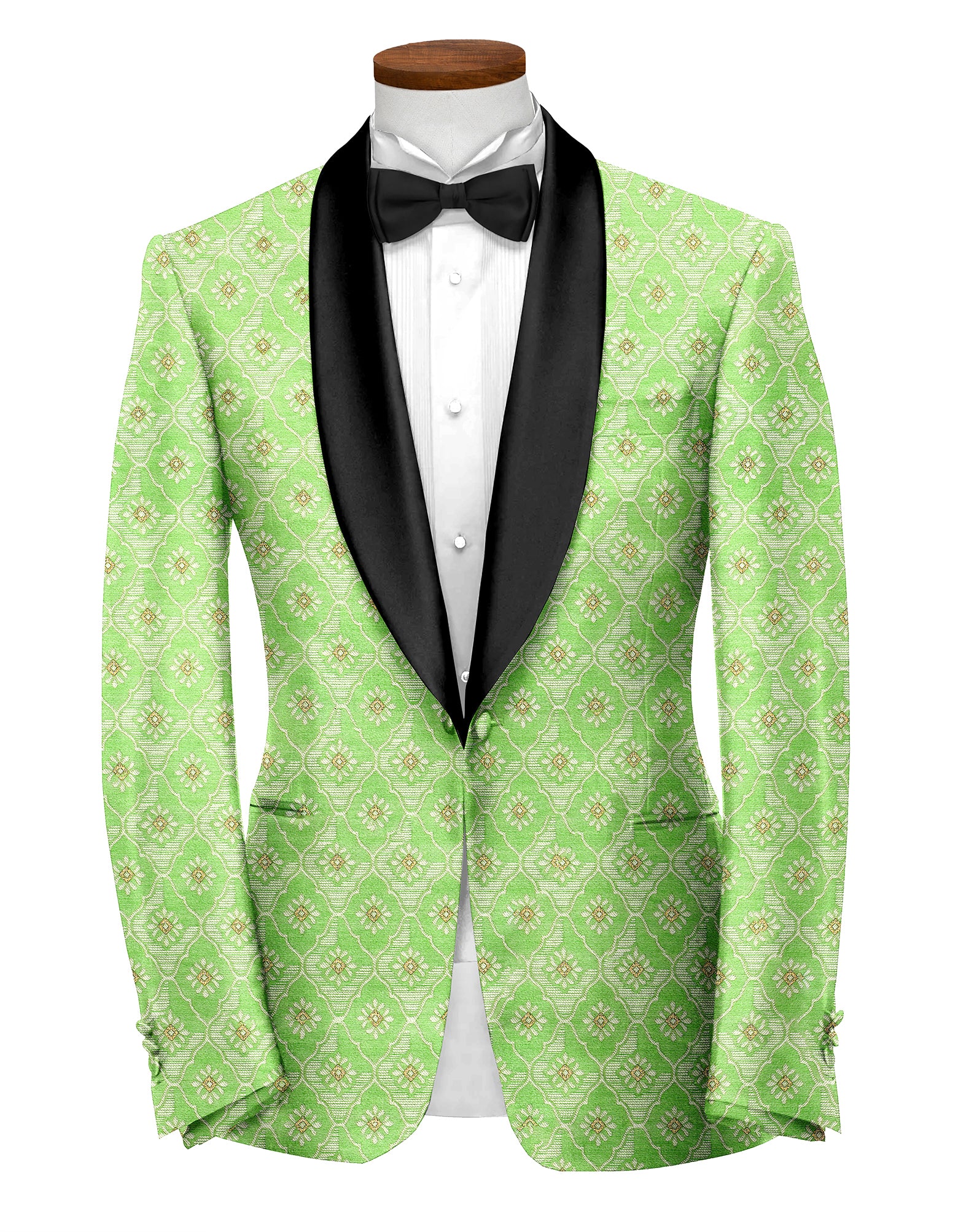 Olive Green Men's Party Jacquard Suit Jacket Slim Fit Blazer