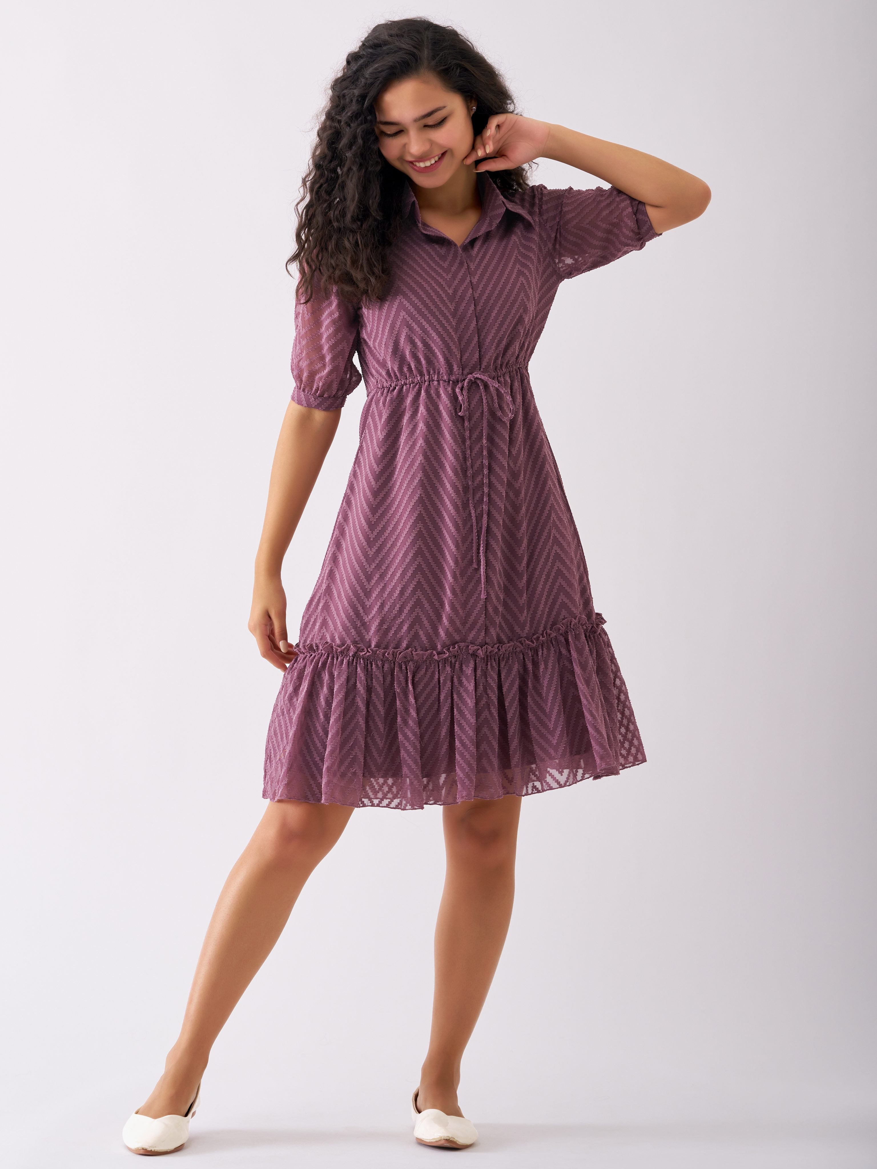Purple Chiffon Brasso Swiss Dot Point Collar Dress