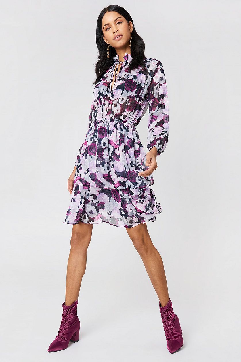 Multi Polyester High Frill Neck Dress