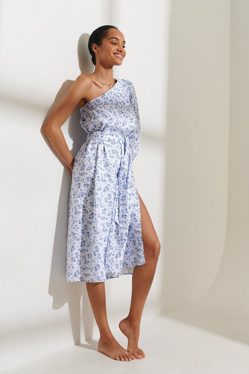 • Style Features: Linen Fabric ,Long Sleeve, One Shoulder, Printed, Floral, Modern/Fitted, Dress, Regular,Regular Body Fit,Tie Closure With Available Sizes Are S(34), M(36), L(38), XL(40), XXL(42).
