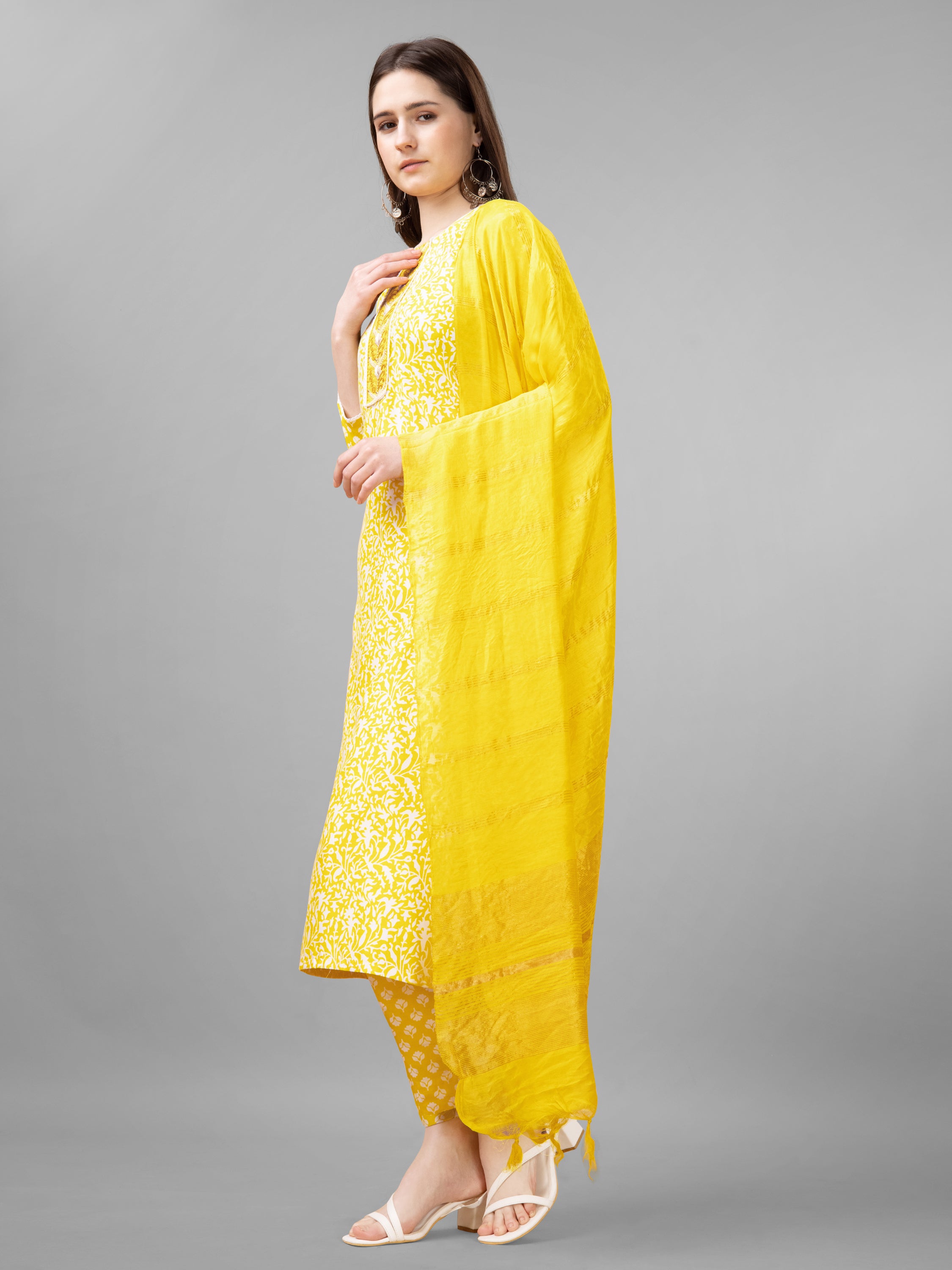 Yellow Rayon Printed Salwar Suit With Pant Dupatta