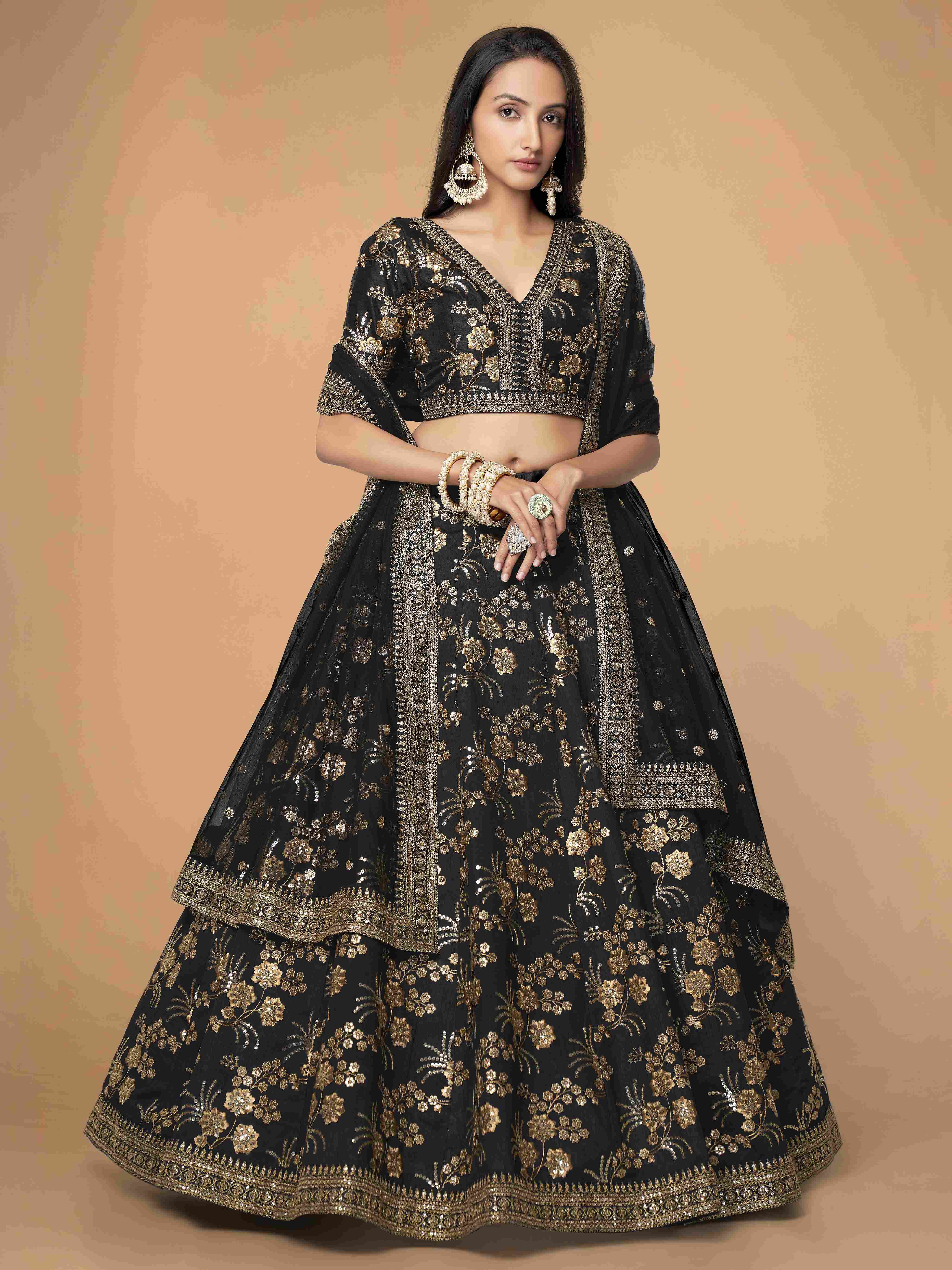 Black Sequins Dori Embroidered Net Lehenga Choli