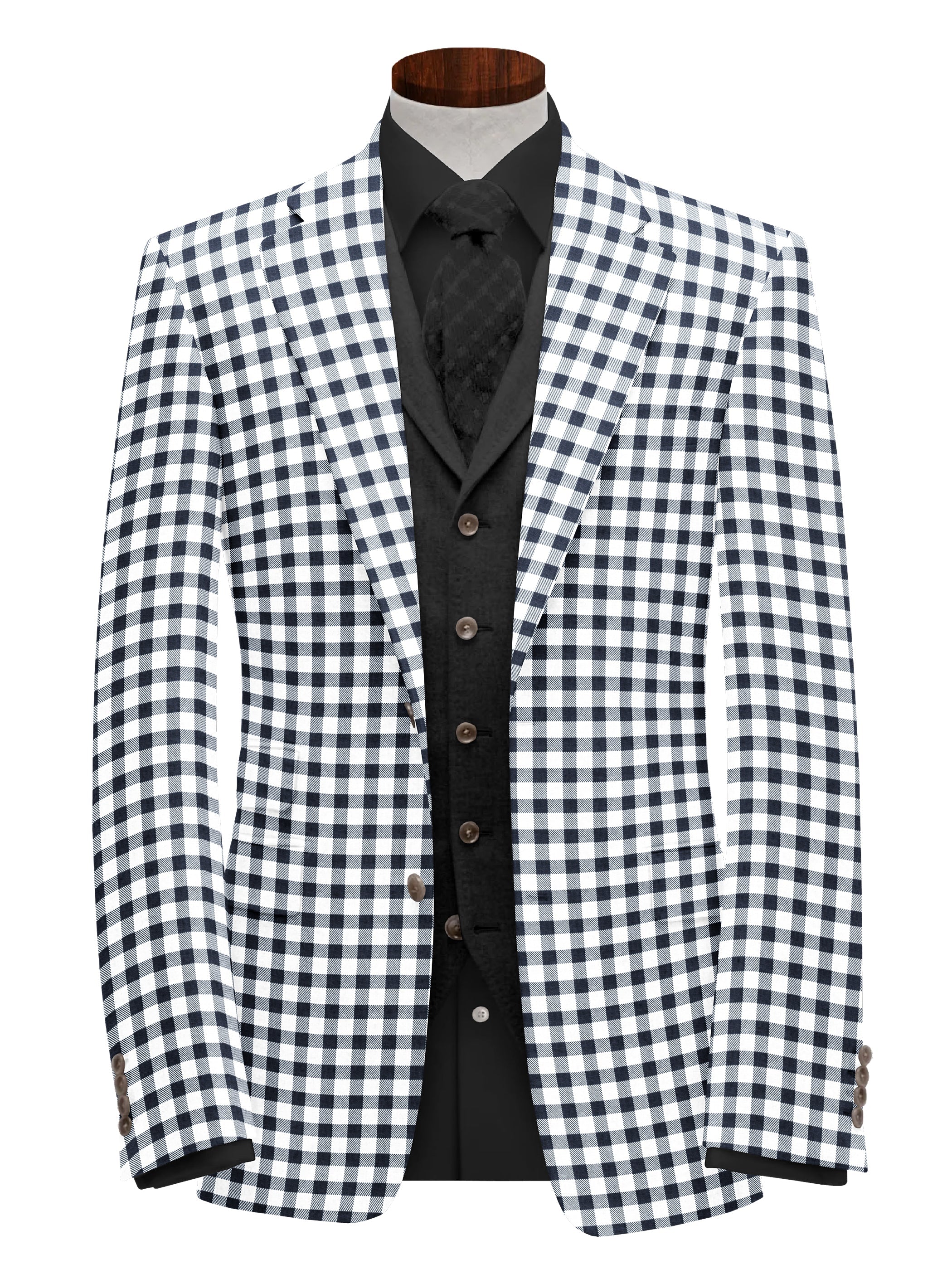 White Men's Two Button Dress Party Checks Print Suit Jacket Notched Lapel Slim Fit Stylish Blazer