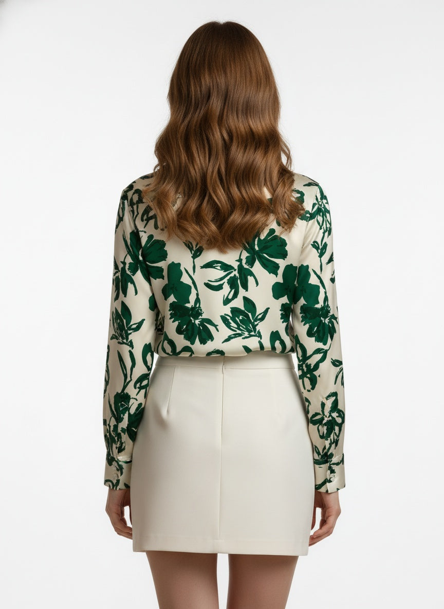 Cream Green Floral Printed Poly Poly Crepe Women's Shirt