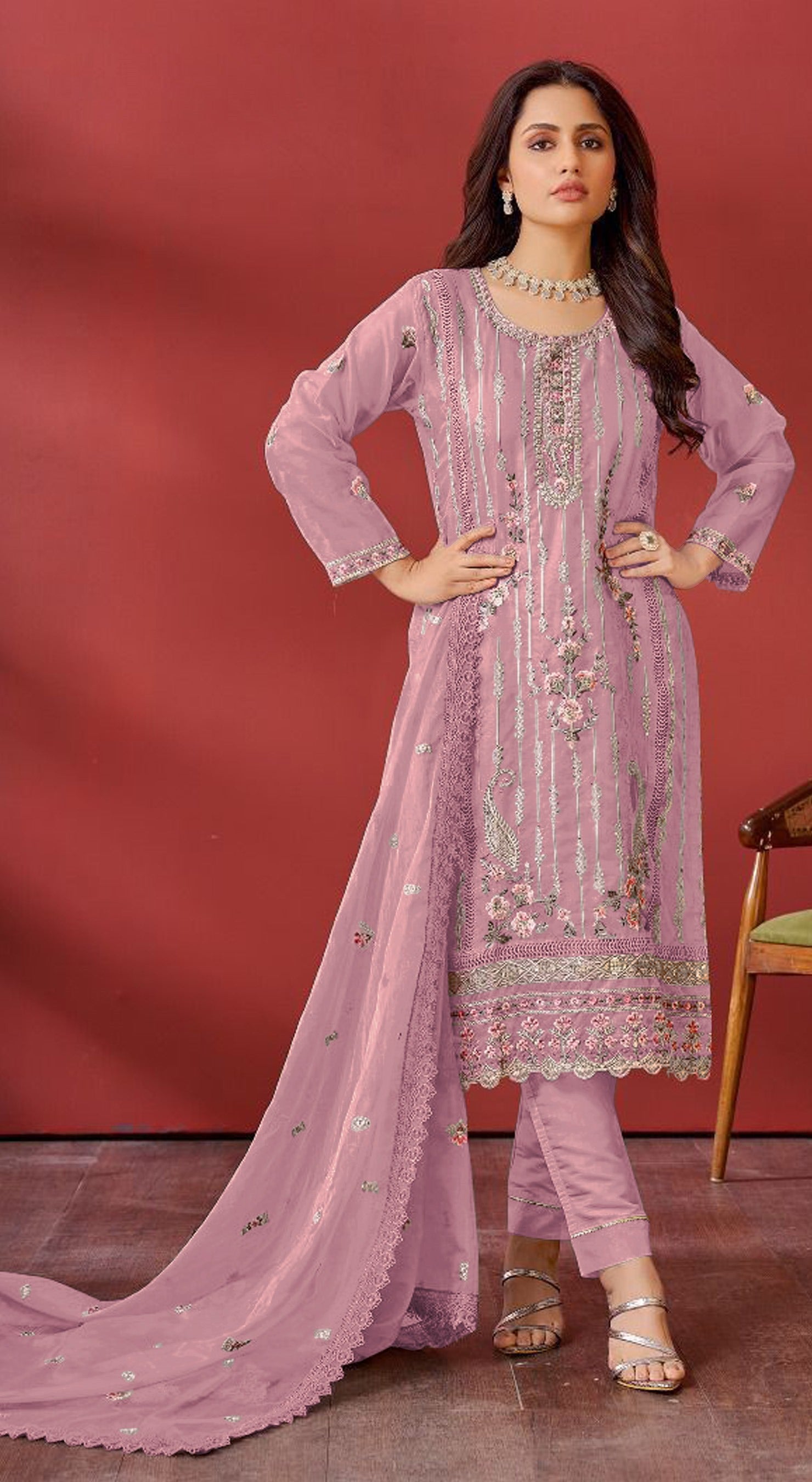 Pink Organza Embroidered Salwar Suit With Dupatta