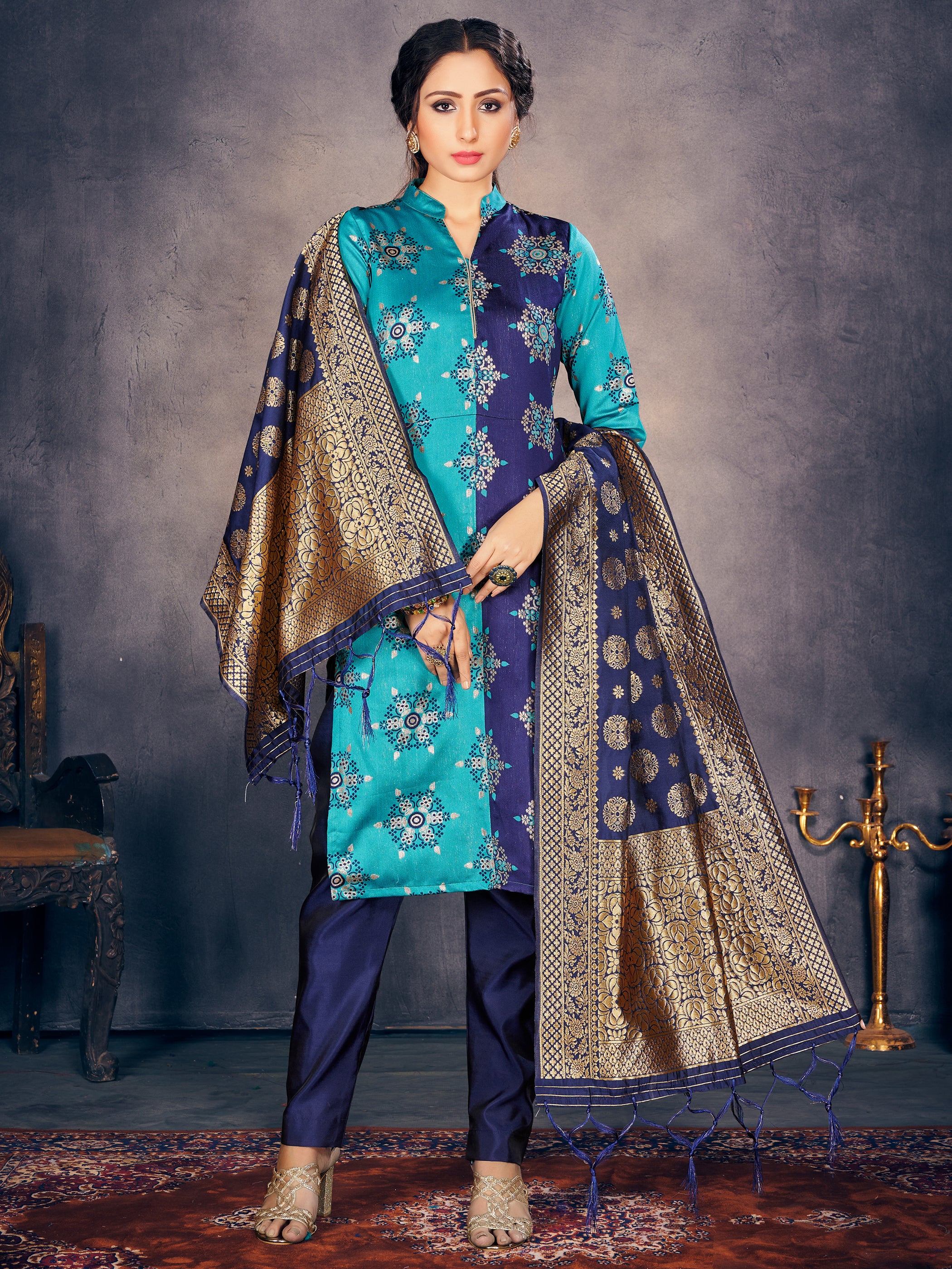 Turquoise Banarasi Art Silk Woven Salwar Suit