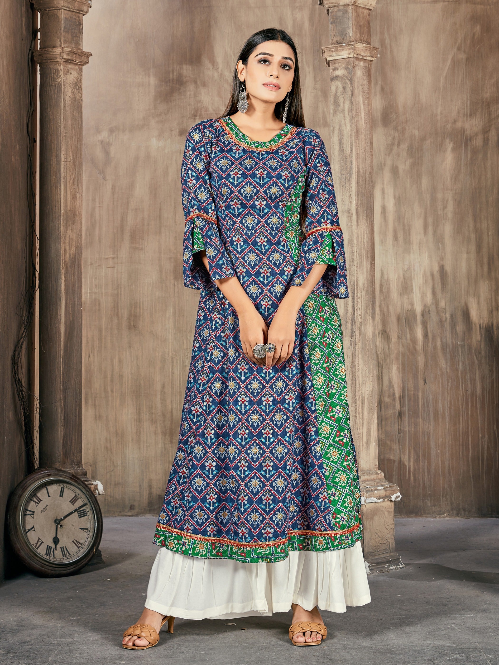• Kurti Style: Flared || Kurta Length: Knee Length