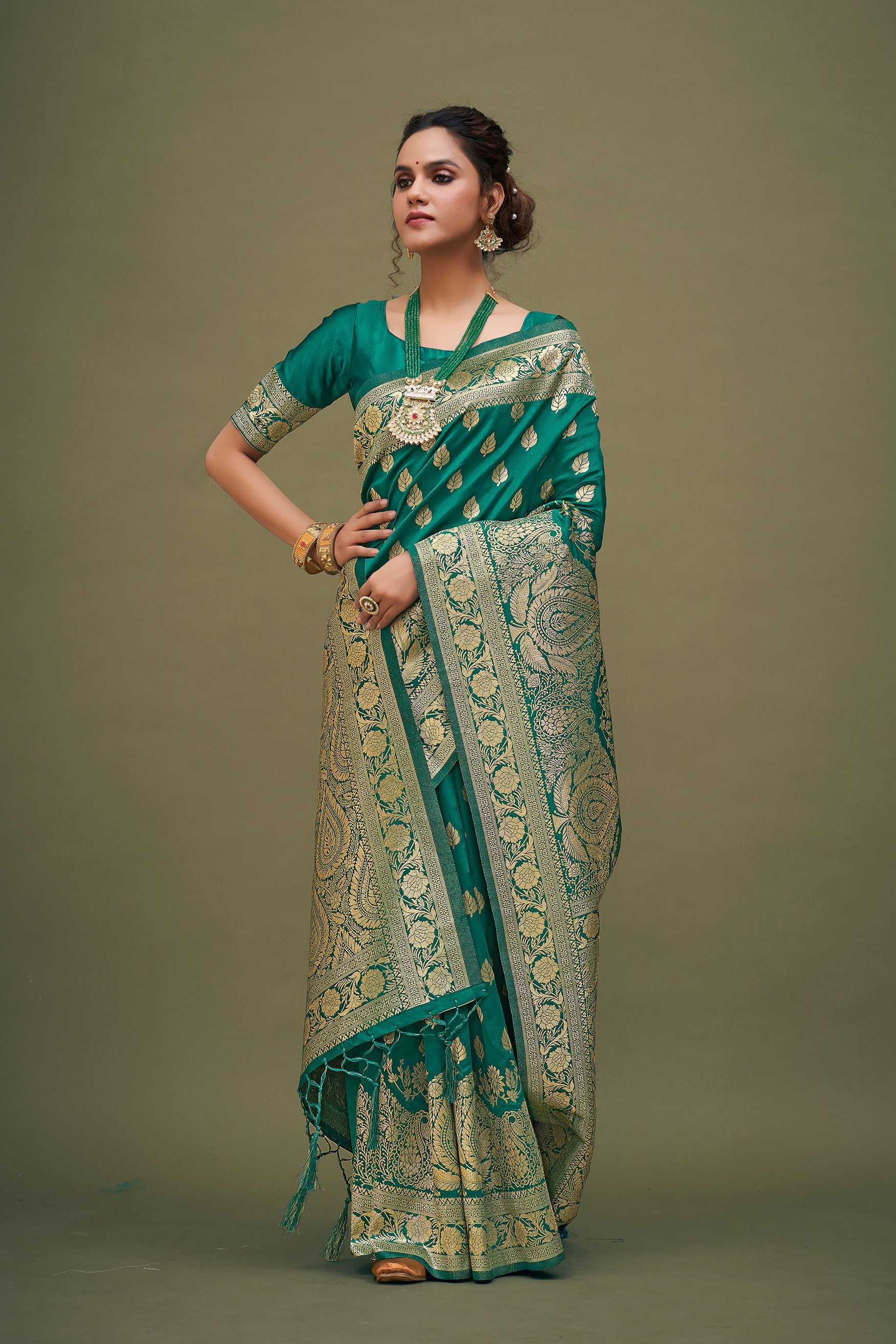 Saree tissé en soie d'art Banarasi vert sarcelle