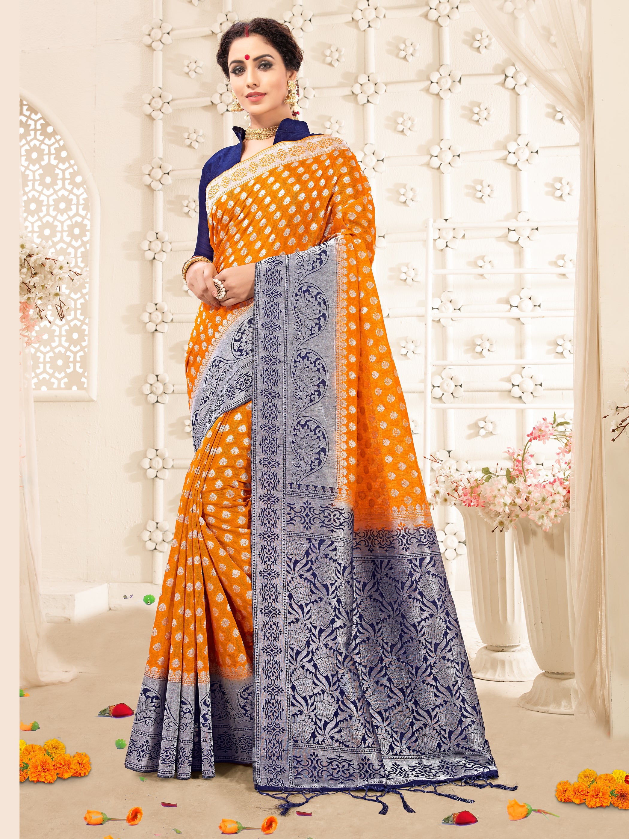 Orange Banarasi Art Silk Woven Saree