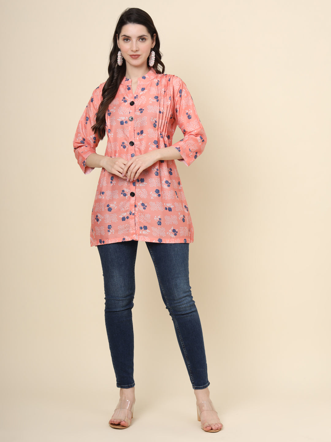 Tunique en coton imprimé pêche