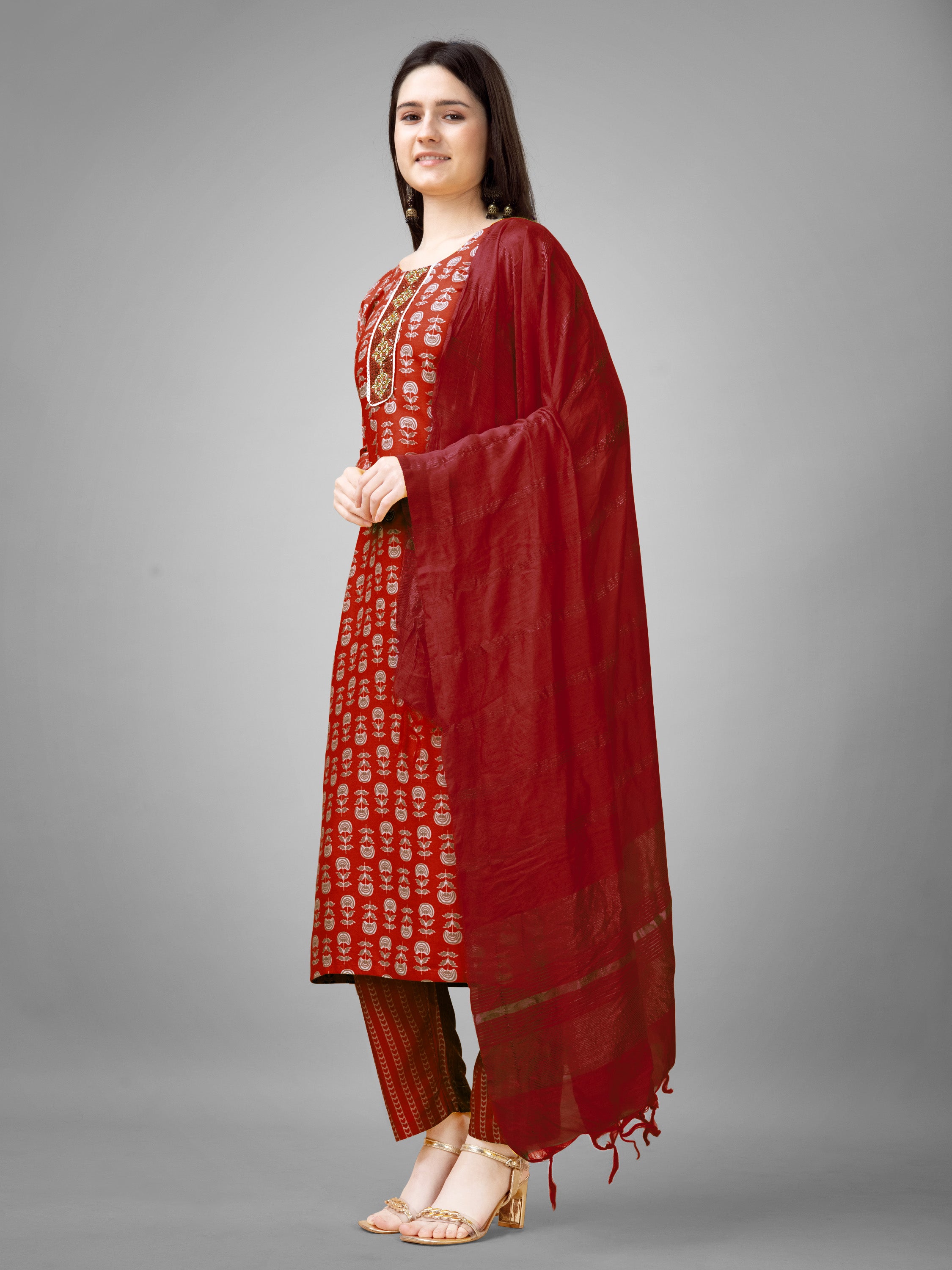 Costume Salwar imprimé en rayonne marron avec pantalon Dupatta