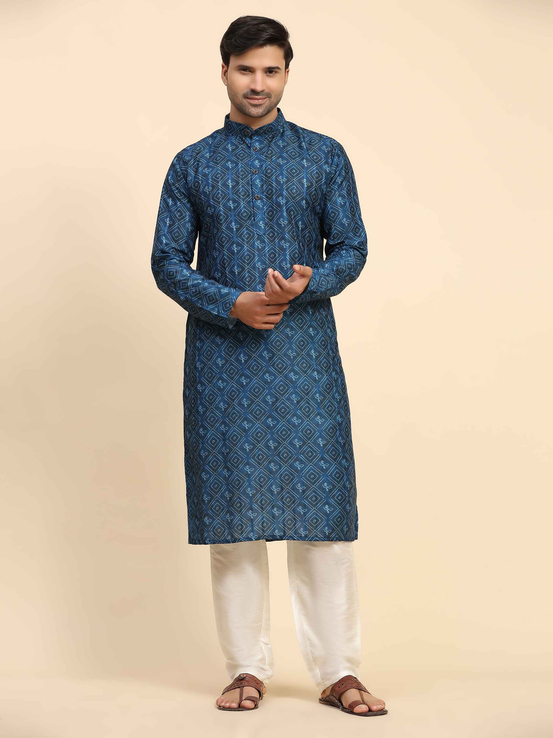 Ensemble pyjama Kurta de travail entièrement numérique en coton bleu pour hommes