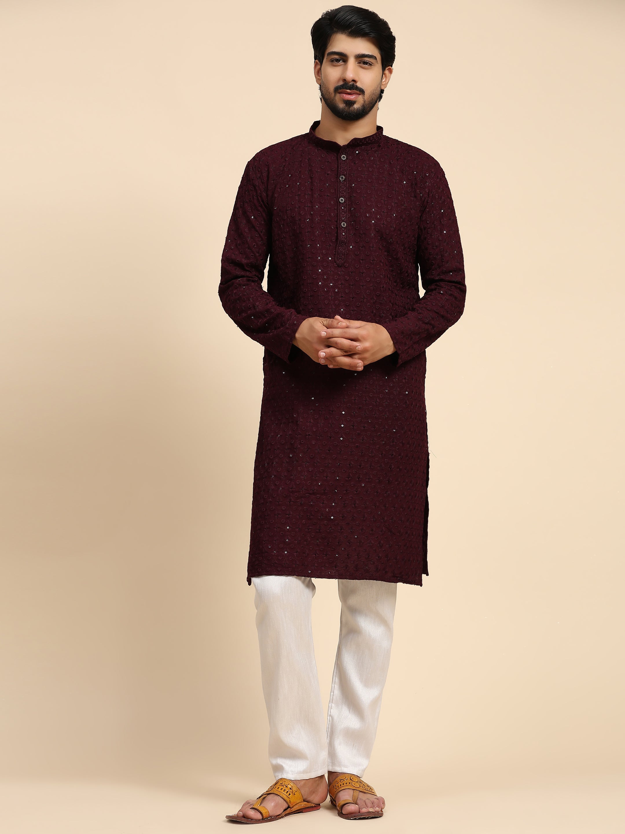 Ensemble de pyjama ChikanKari Kurta en rayonne de coton pour hommes