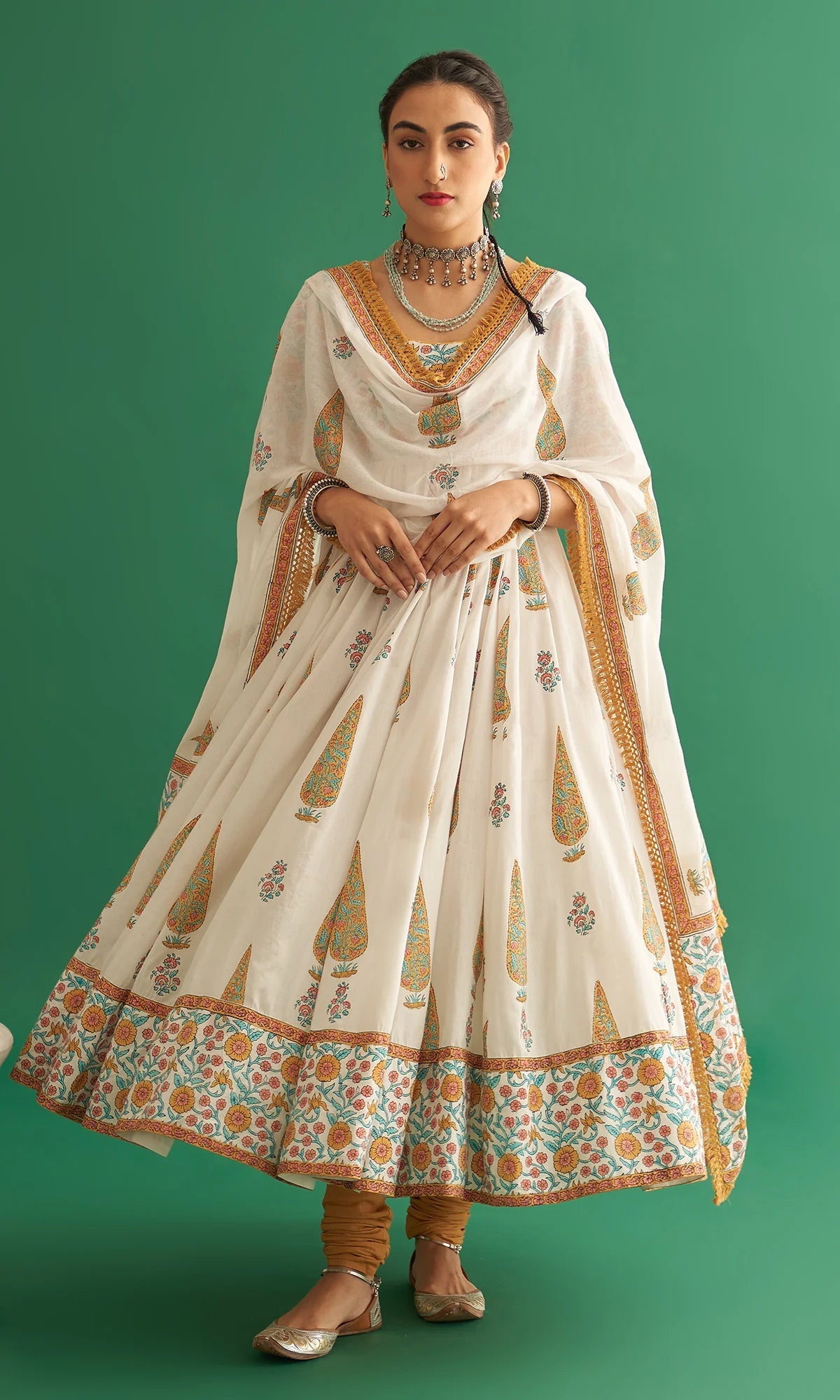 • Contenu du pack : - 1 haut cousu (Anarkali), 1 bas cousu (pantalon) et 1 Dupatta || Longueur du Dupatta : - 2,5 mètres