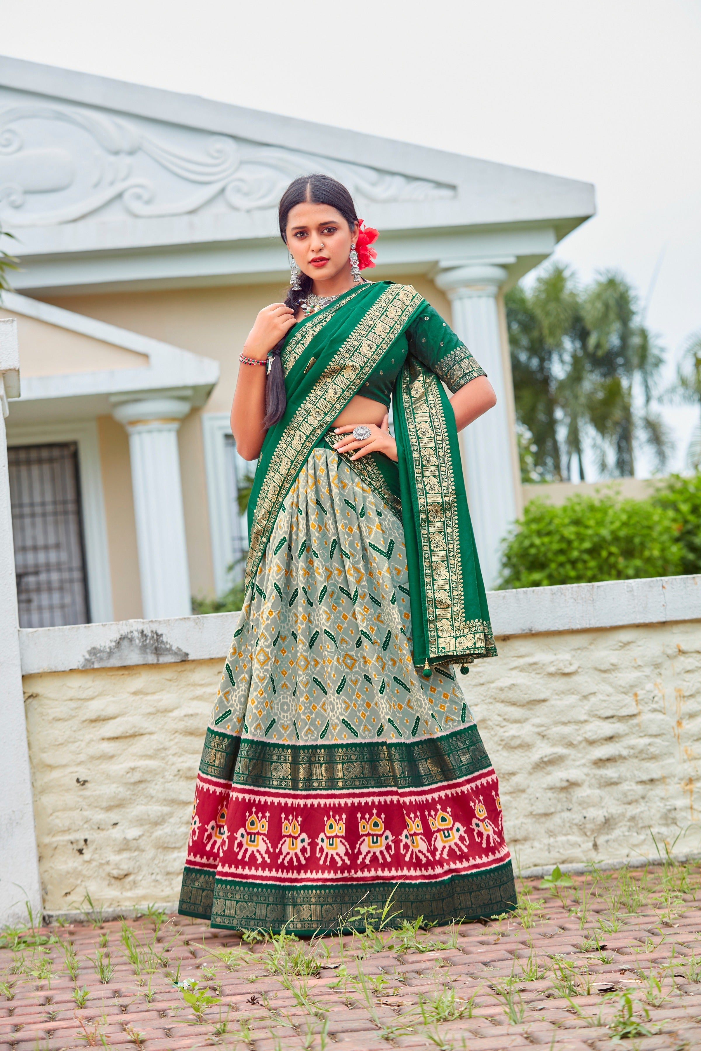 • Couleur du Lehenga : Gris poussiéreux