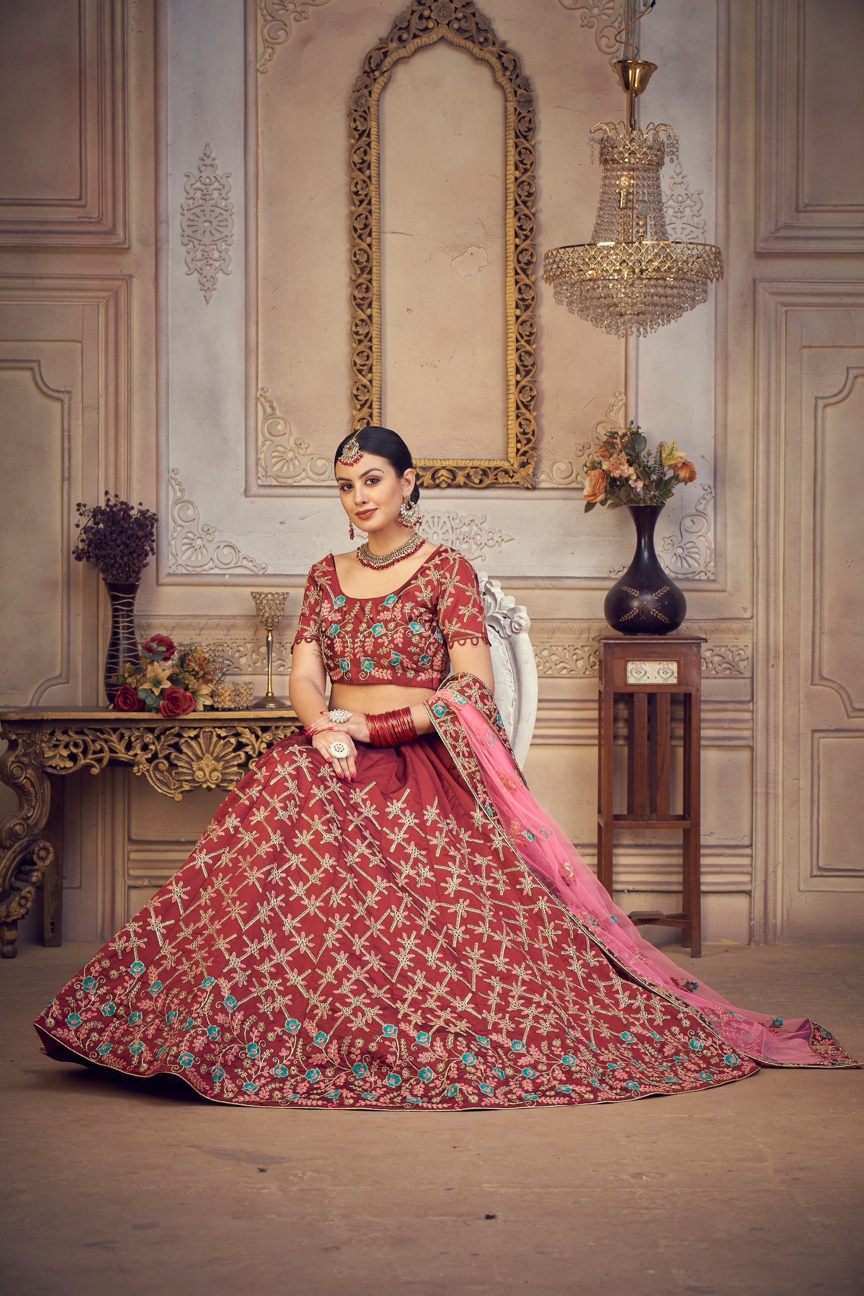 • Couleur du Lehenga : Bordeaux || Couleur du chemisier : Bordeaux || Couleur du Dupatta : Rose