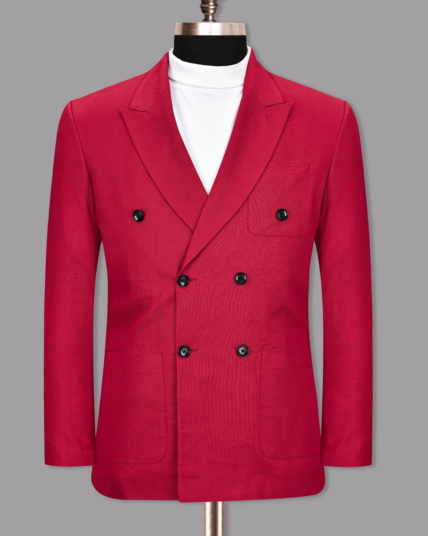 Veste de costume rouge à deux boutons pour homme, tenue de soirée unie, revers cranté, coupe slim, blazer élégant
