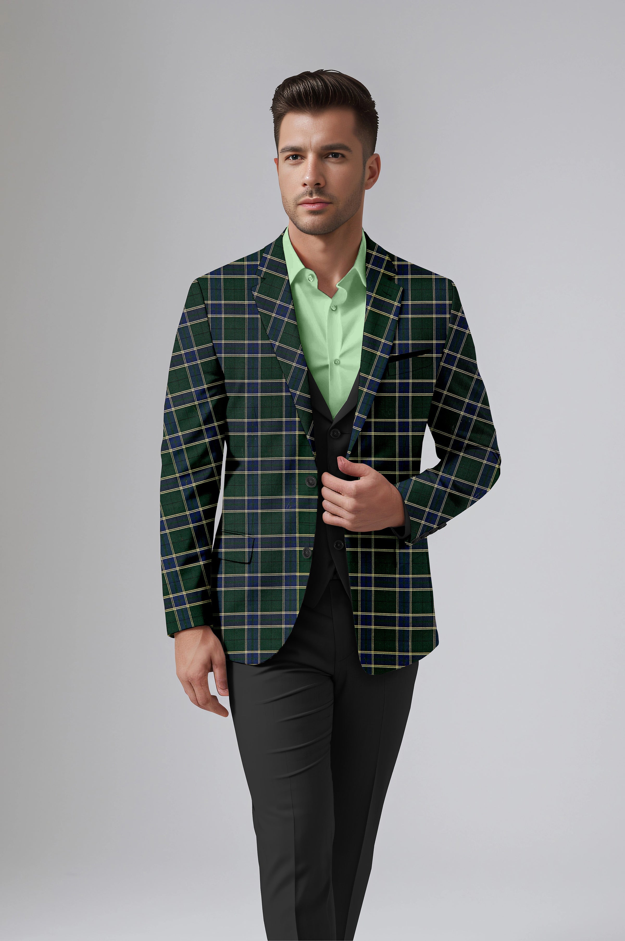 Veste de costume à carreaux bleu foncé pour homme, blazer slim fit