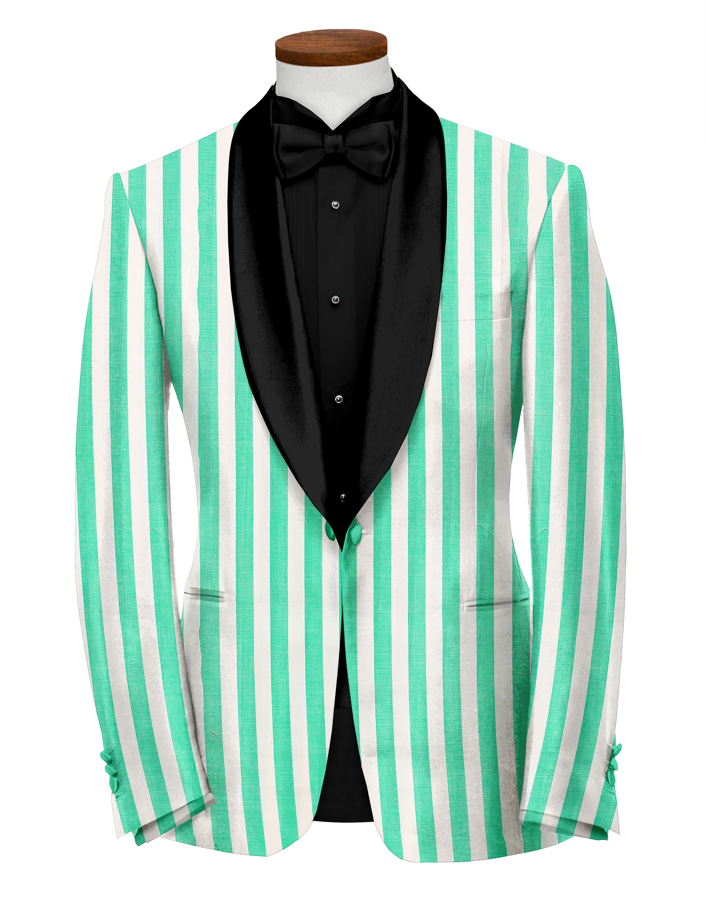 Veste de costume à rayures vertes et blanches pour homme, blazer slim fit