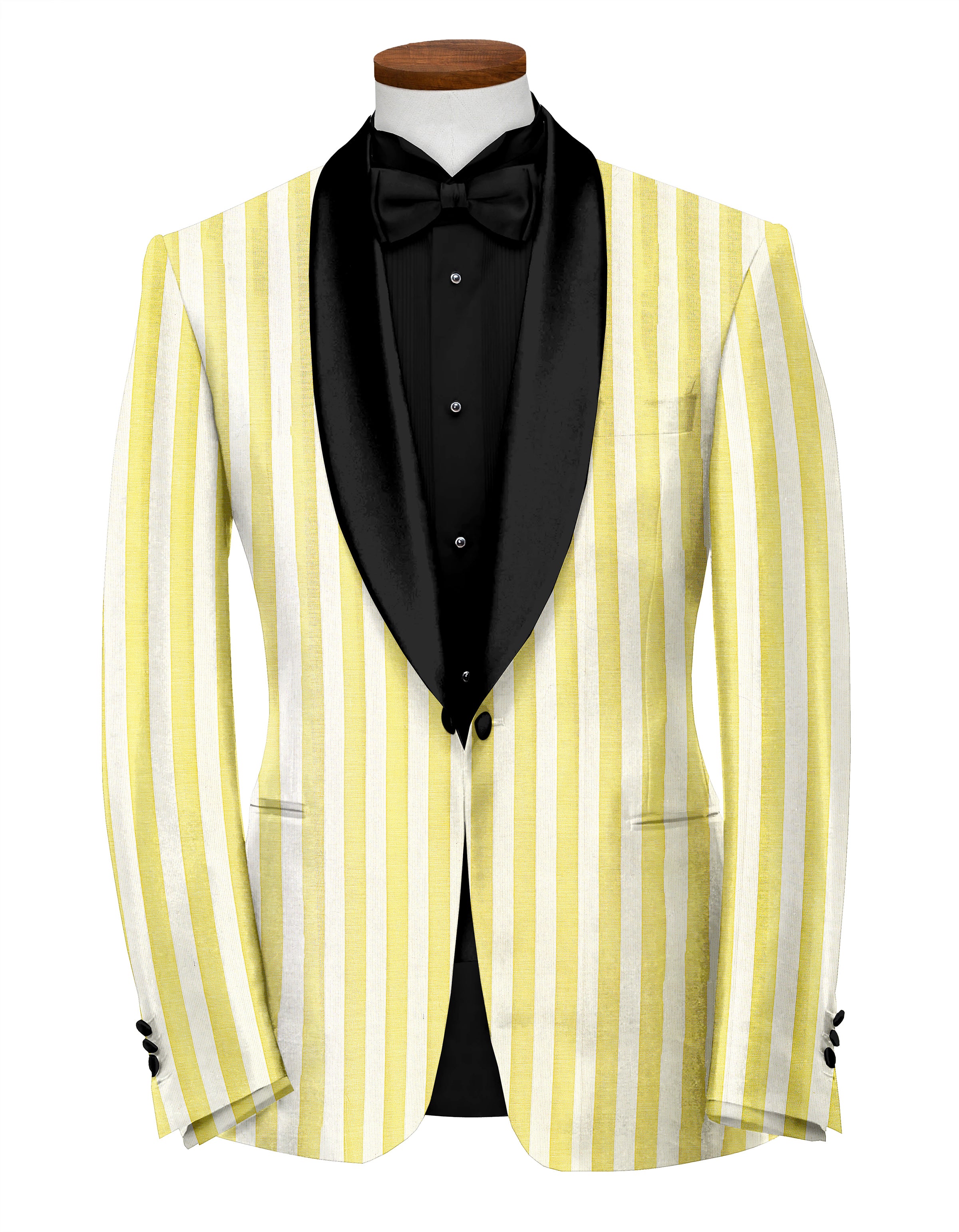 Veste de costume à rayures jaune et blanche pour homme, blazer slim fit