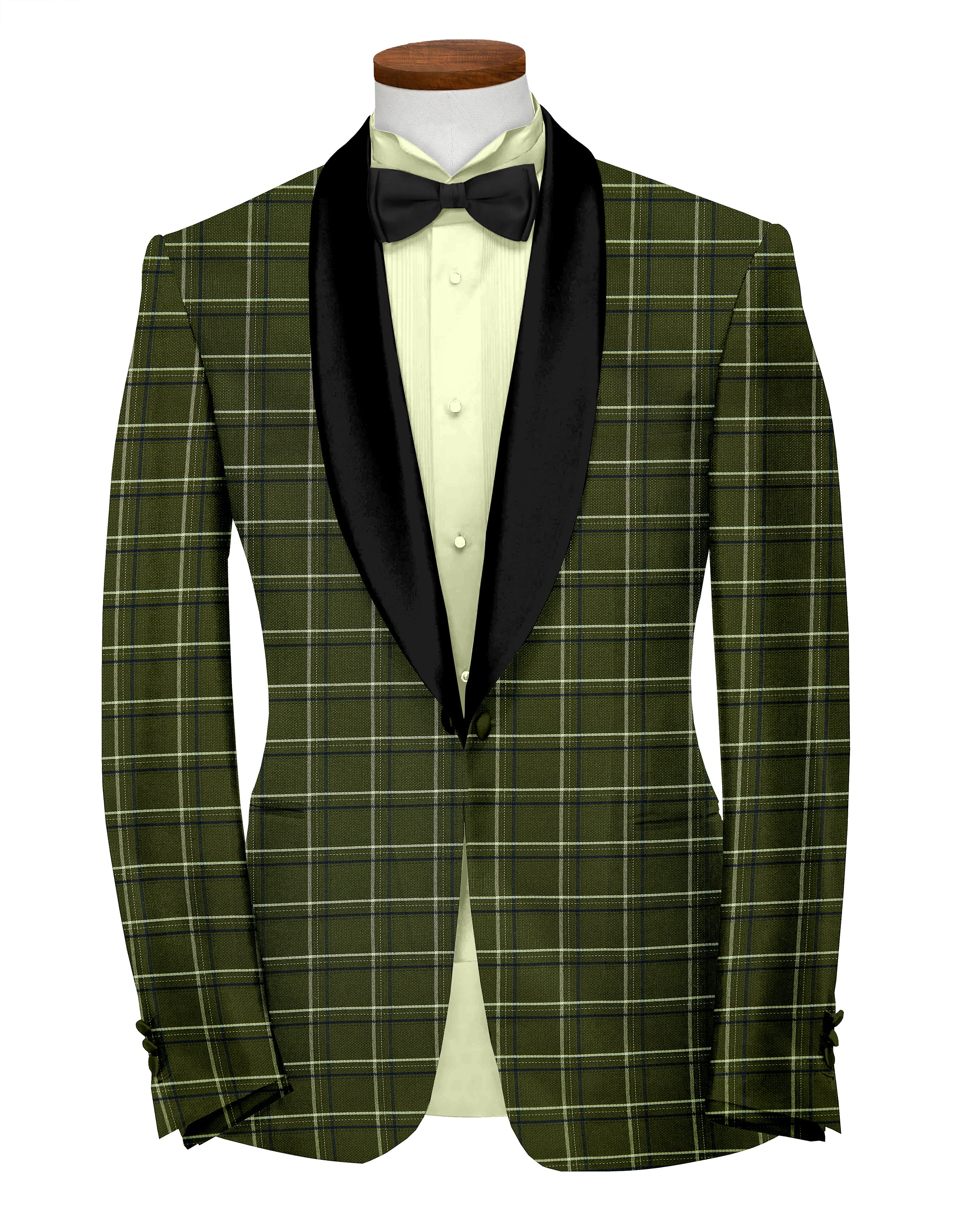 Veste de costume à carreaux de fête pour homme, coupe slim, couleur olive foncé