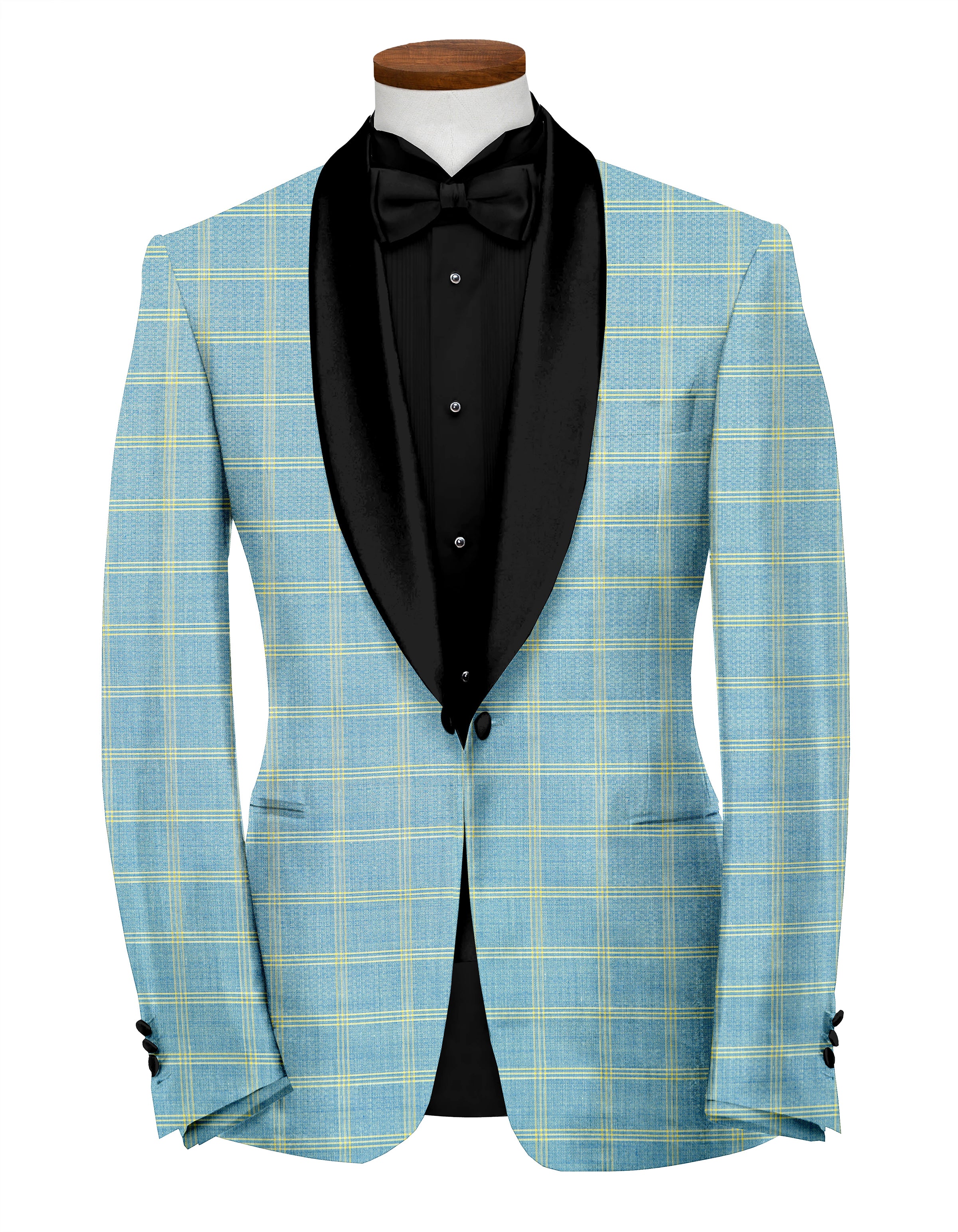 Veste de costume à carreaux bleu pastel foncé pour homme, blazer slim fit