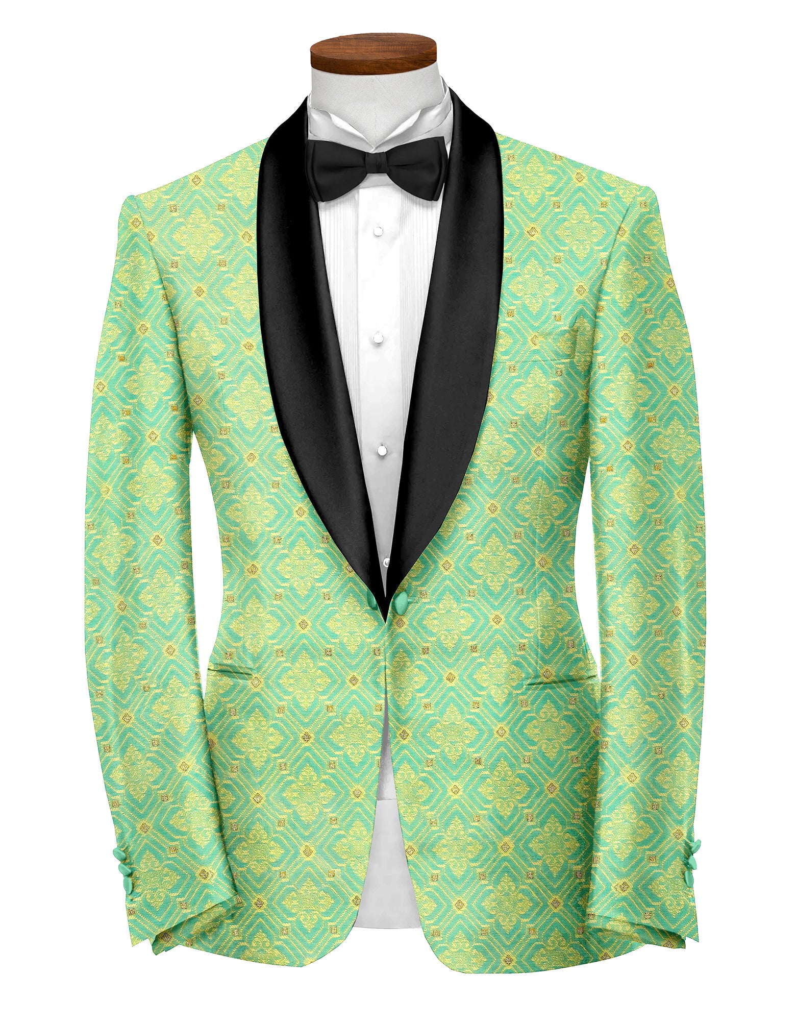 Veste de costume jacquard bleu sarcelle clair pour homme, blazer slim fit