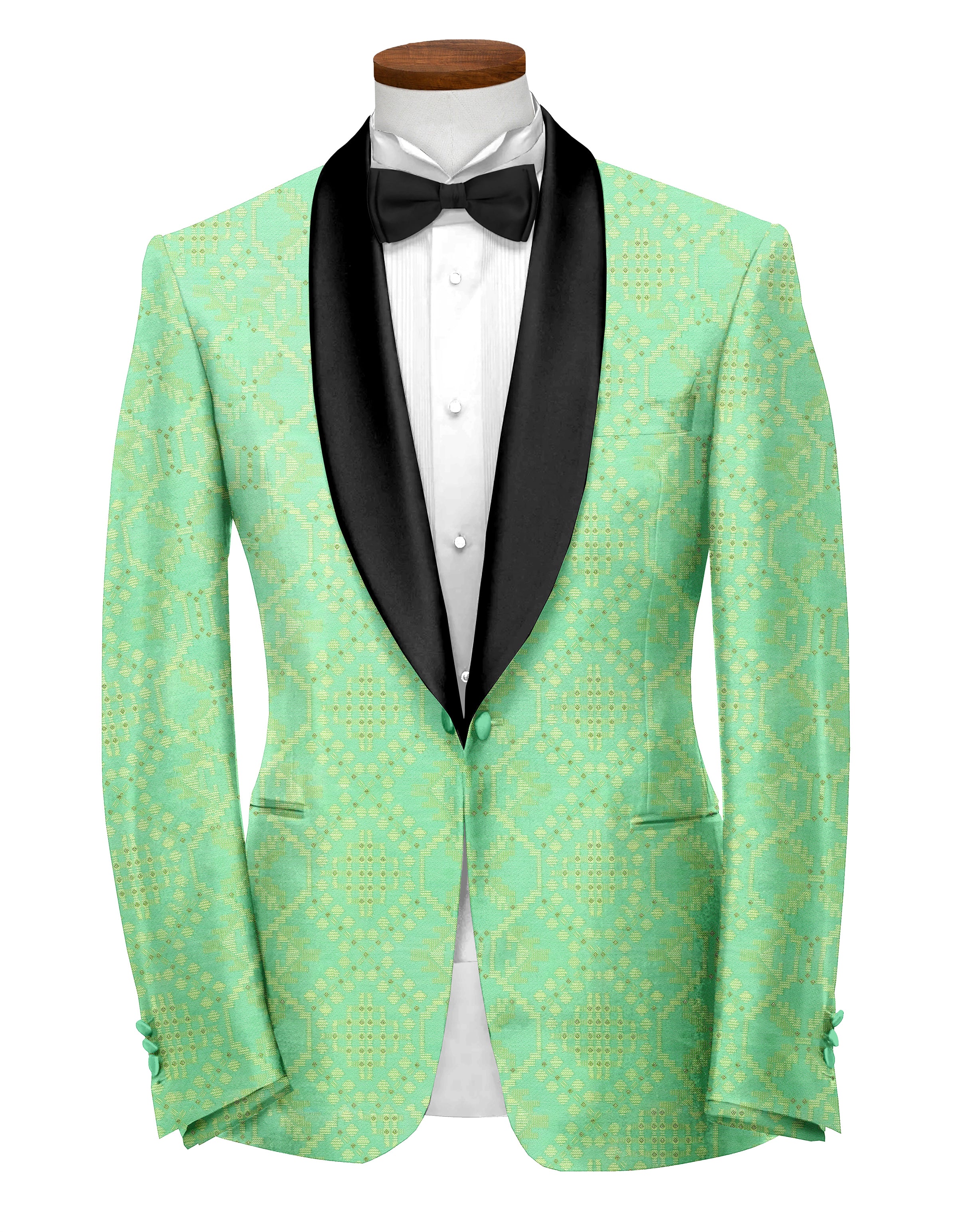 Veste de costume jacquard de fête pour homme vert mer Blazer coupe slim