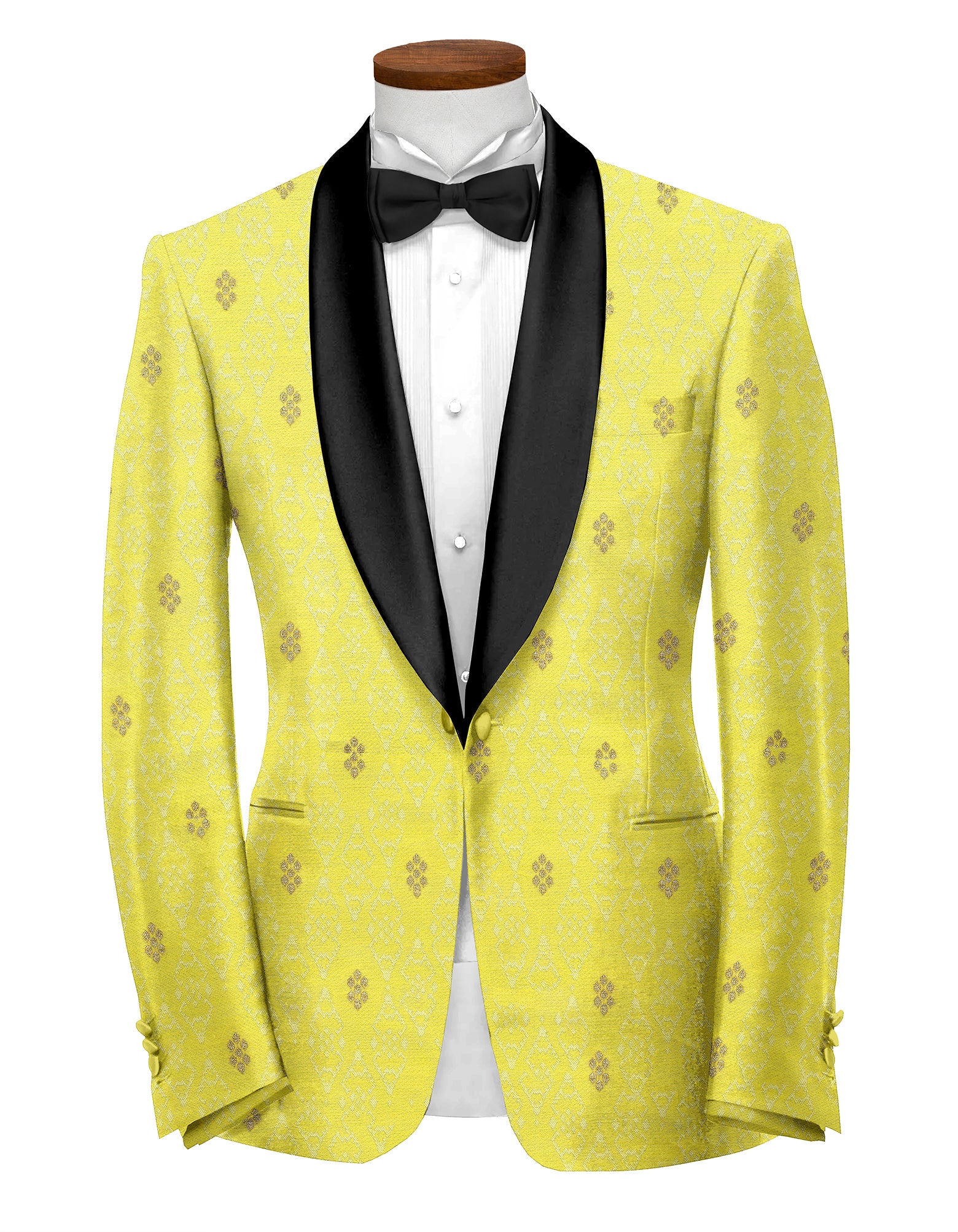 Veste de costume jacquard de fête pour homme, blazer slim fit, jaune souci