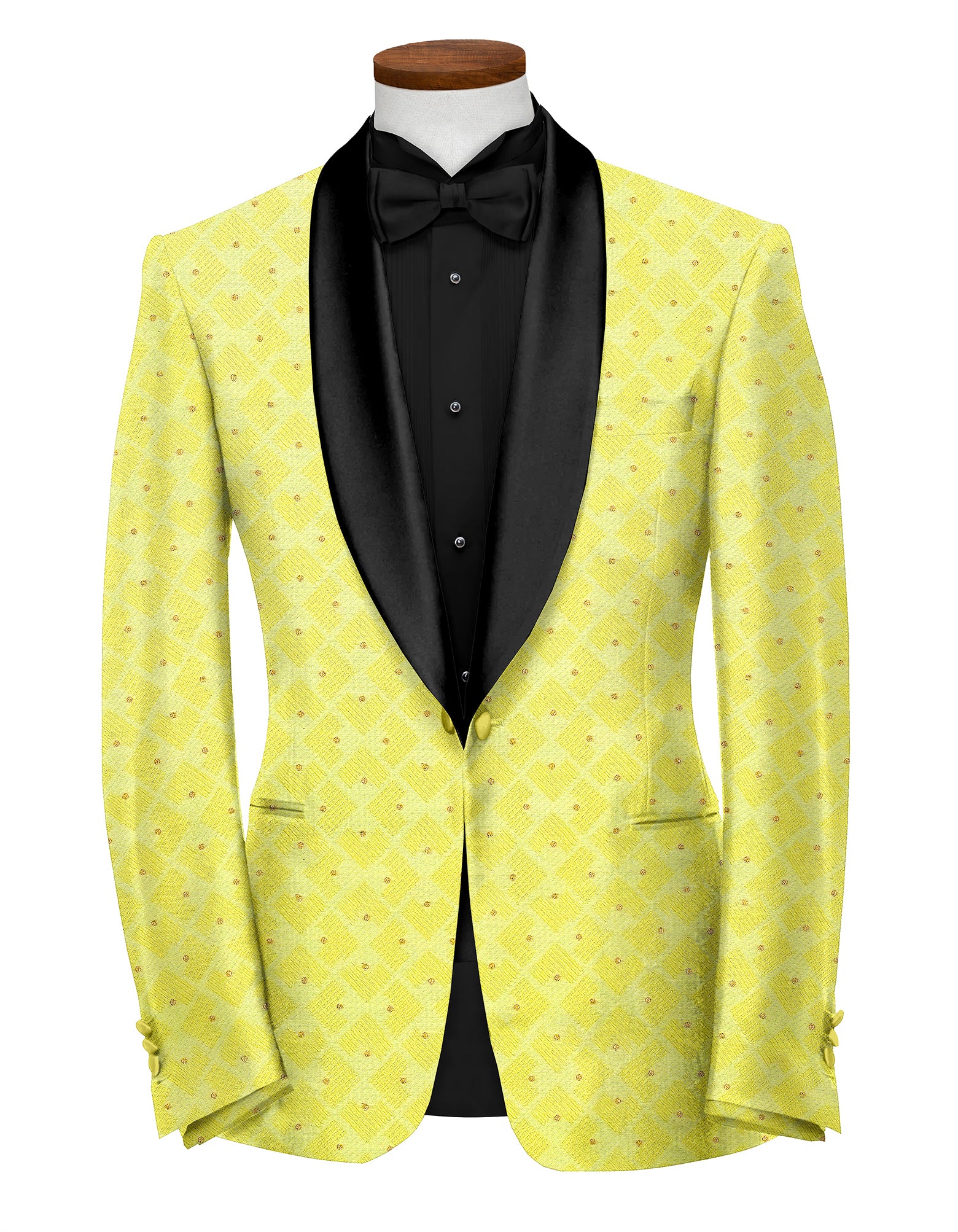 Veste de costume jacquard jaune terne pour homme, blazer slim fit