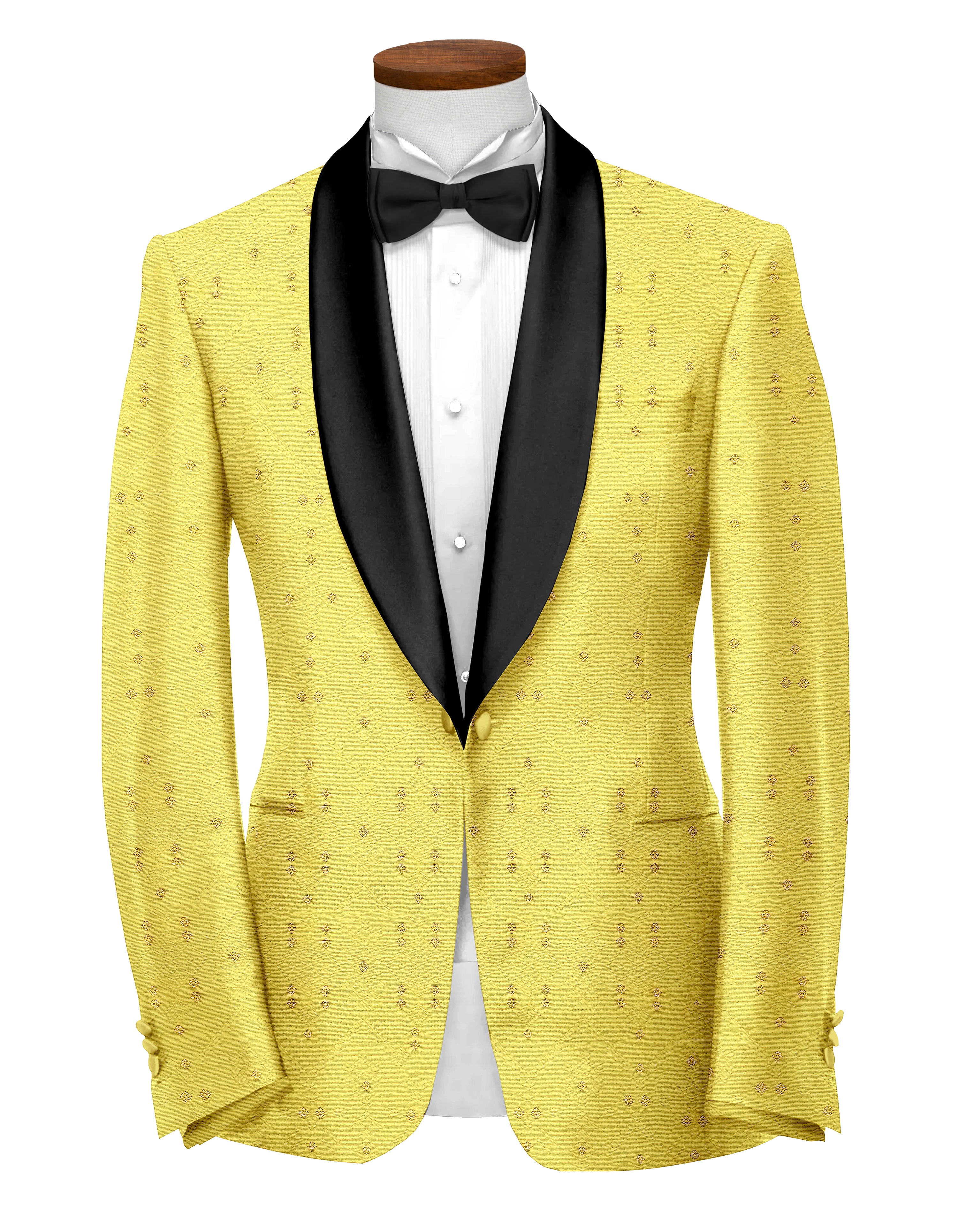 Veste de costume jacquard jaune terne pour homme, blazer slim fit