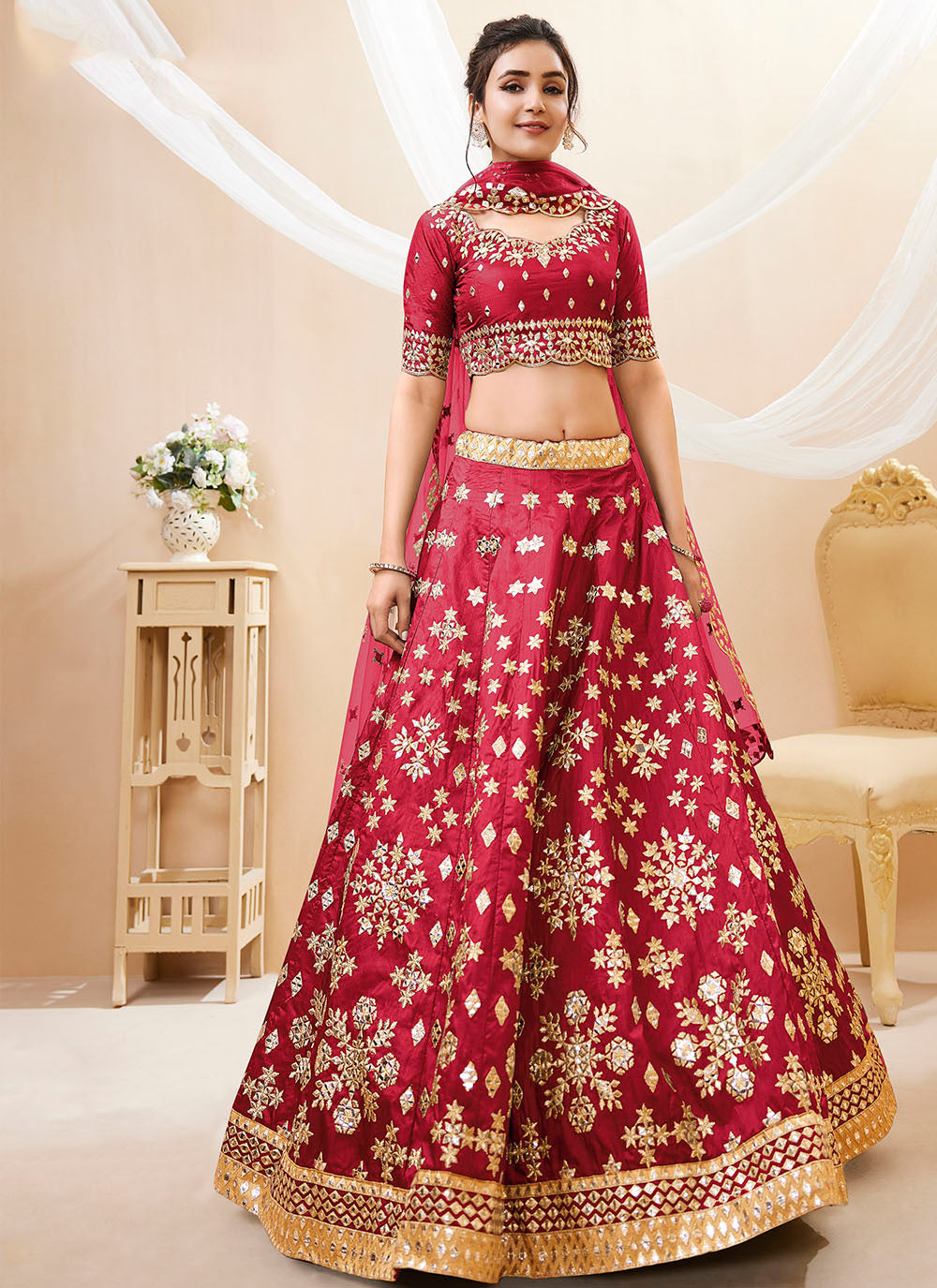 • Couleur du Lehenga : Rouge