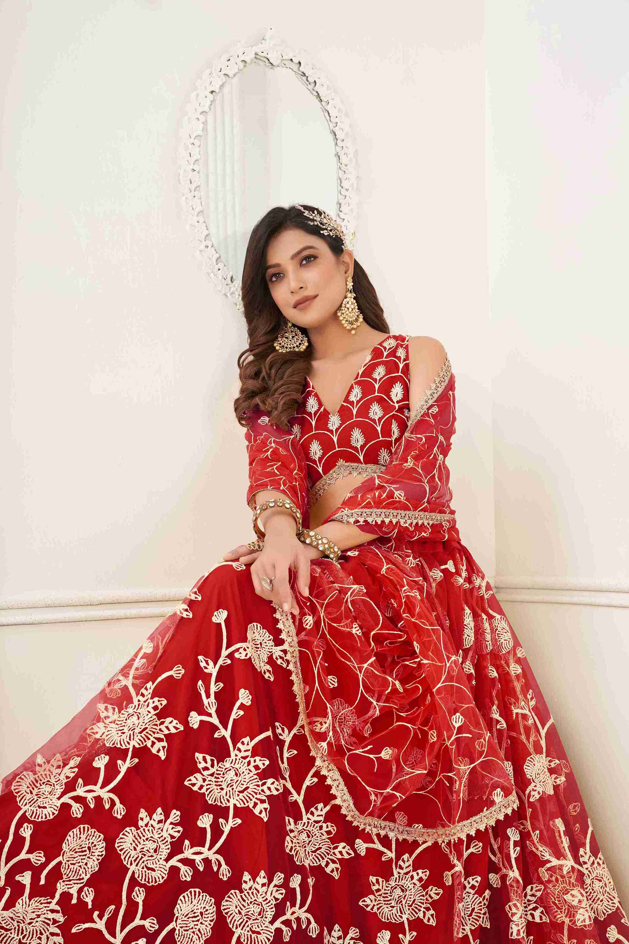 • Le Lehenga Choli est une tenue traditionnelle indienne généralement portée par les femmes pour des occasions spéciales telles que les mariages, les festivals et les événements officiels. La tenue se compose d'une jupe longue (Lehenga), d'un chemisier (Choli) et d'un Dupatta (foulard).
