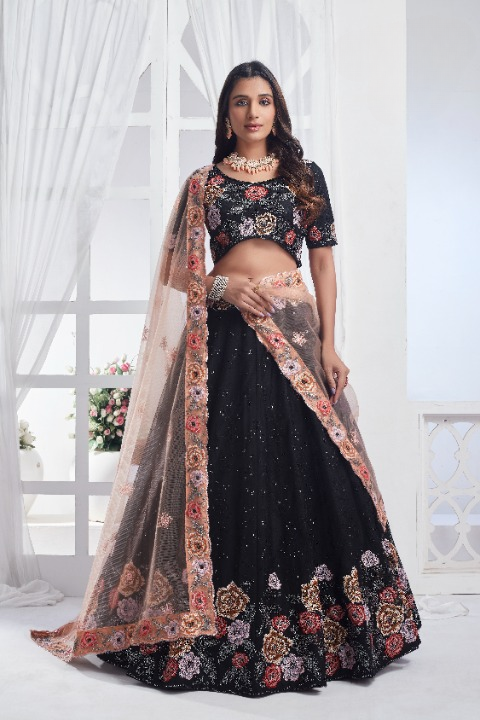 Black Net Sequins Embroidered Lehenga Choli