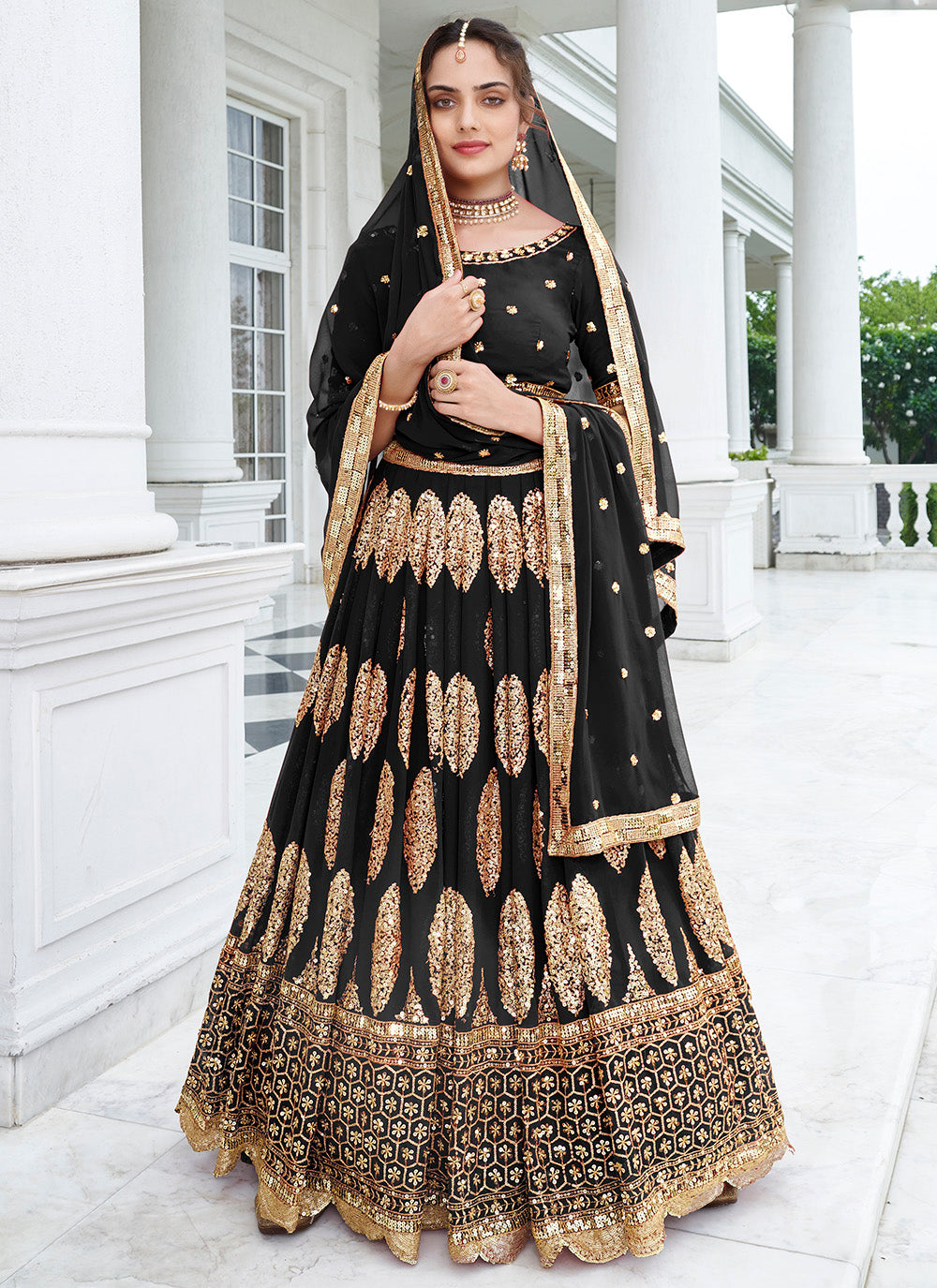 Black Thread Sequins Faux Georgette Lehenga Choli