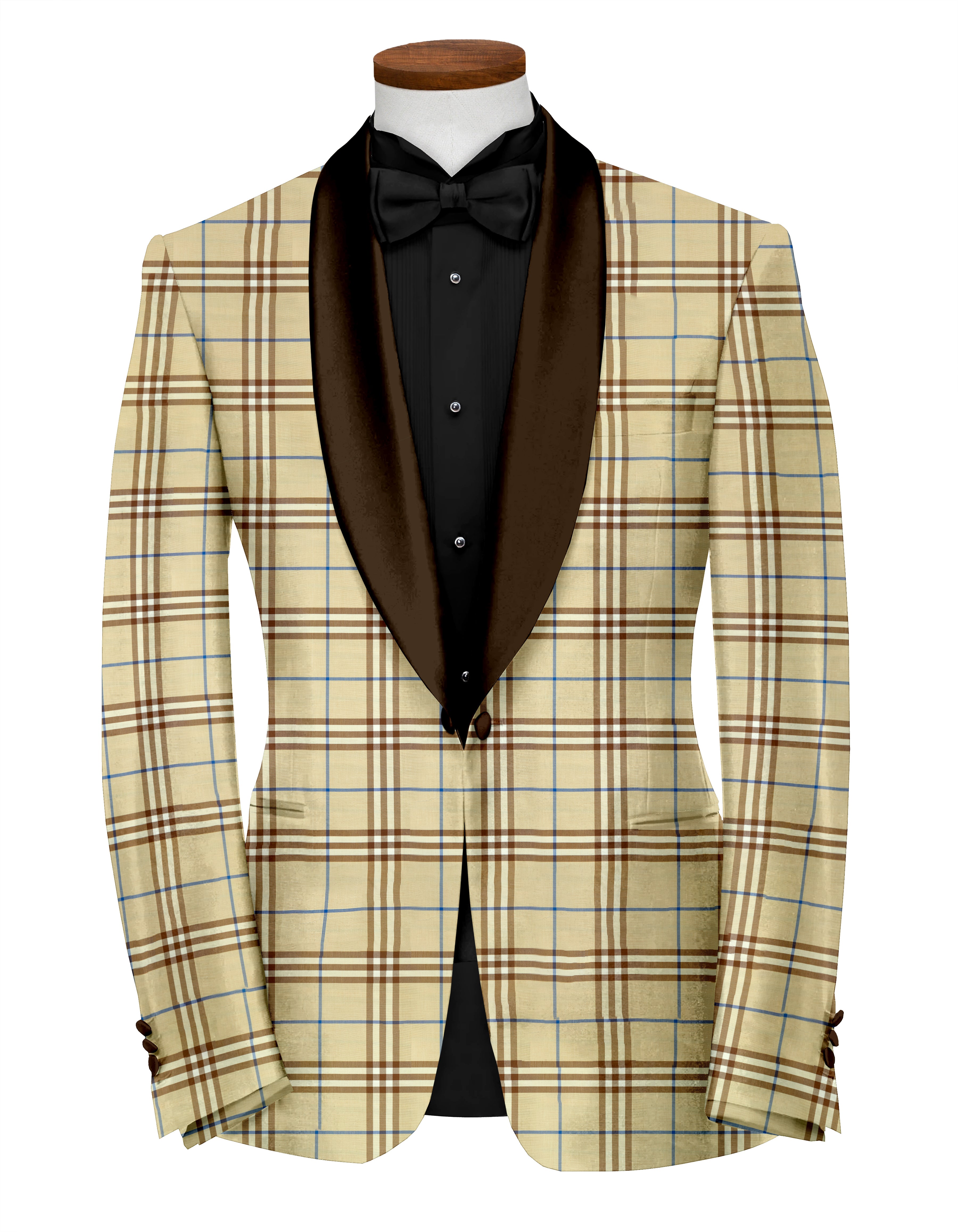 Beige Brown Men's Party Checks Suit Jacket Slim Fit Blazer